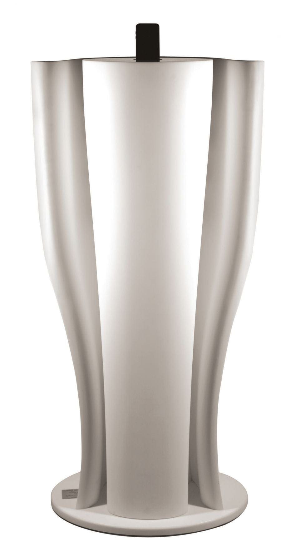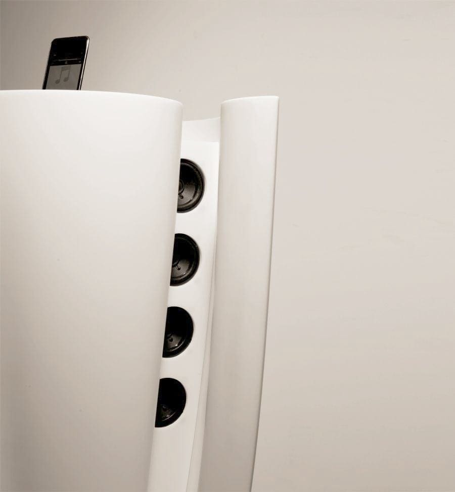 Ce rezultă în momentul în care combini liniile fluide ale unor costume tradiţionale coreene cu un sistem audio cu dock de iPhone? Ei bine, acest este misterul pe care a încercat să îl clarifice şi arhitectul Shi-hyung Jeon, care împreună cu cei de la HI-MACS şi LG Hausys au creat o adevărată operă de artă denumită Horn. De un alb impecabil, cu linii curbe şi o statură impozantă, Horn este o boxă ce susţine iPhone-ul ca un piedestal, oferindu-i şi o voce pe măsură cu ajutorul a 8 difuzoare de 3 inchi.