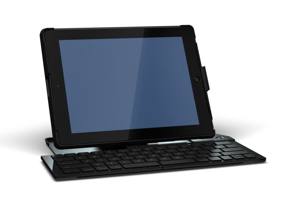 Tastatura Logitech Fold-Up pentru iPad 2 – Este soluţia perfectă pentru utilizarea din mers a tabletei. Tastatura – suport full-size cu conexiune Bluetooth se închide şi se deschide precum o carte, iar la final poţi porni cu ea la drum. Se încarcă de la USB, astfel schimbatul bateriilor nefiind un motiv de îngrijorare. Dispozitivul se ridică şi este gata de funcţionare chiar în momentul când este deschis şi se închide automat în momentul în care este împachetat, ajutând astfel la economisirea bateriei.