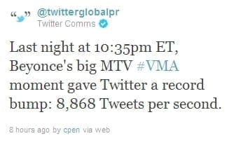 Acest nou record dovedeşte – mai mult decât popularitatea lui Beyonce – faptul că numărul celor care folosesc platforma de micro-blogging este în creştere.