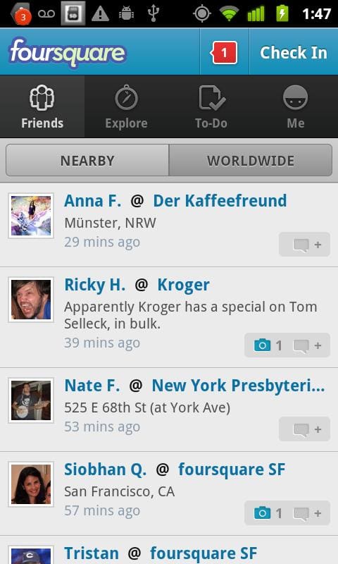Mult-aşteptatul update la aplicaţia Foursquare pentru sistemul de operare Android a fost lansat ieri. Printre actualizări se numără o interfaţă remodelată şi adiţia opţiunilor Events şi Inline photos.