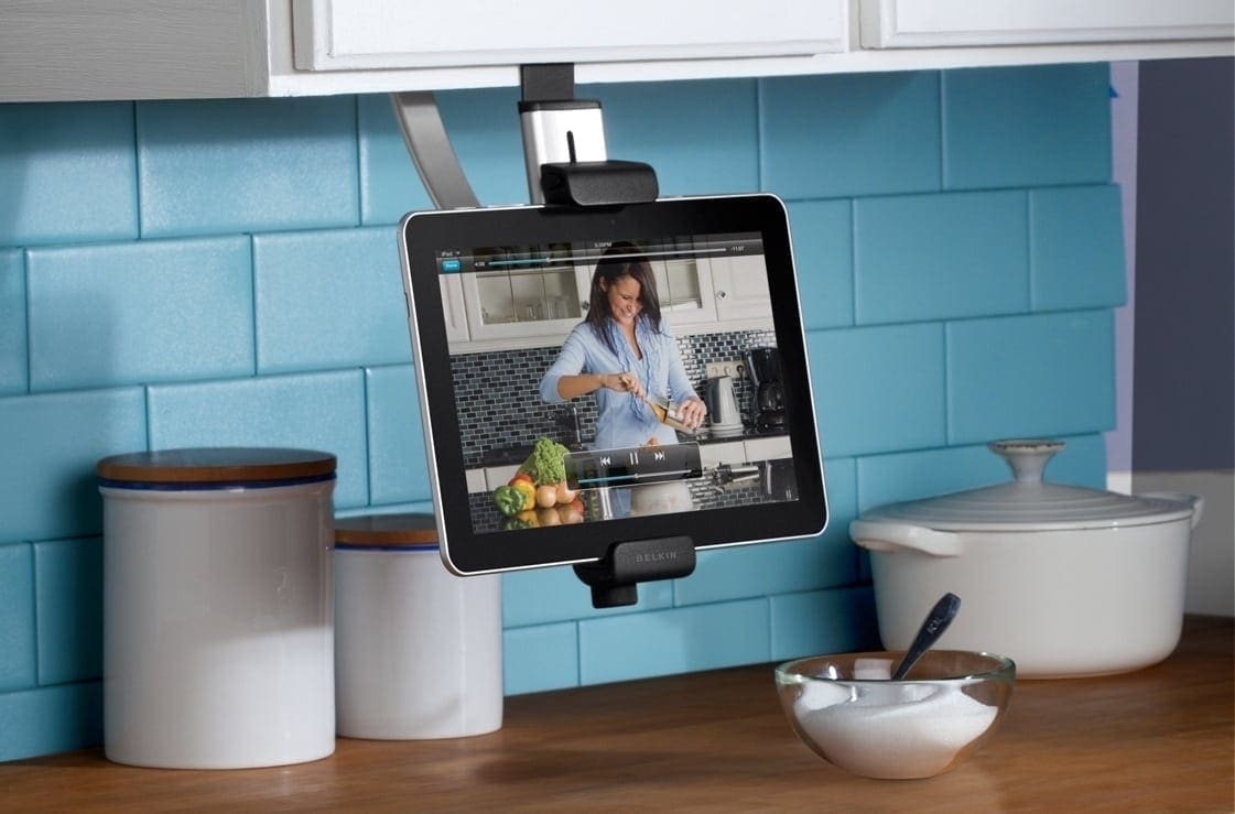 Kitchen Cabinet Mount – Ultimul accesoriu din gama dedicată Belkin economiseşte spaţiu de pe mobile din bucătărie. Kitchen Cabinet Mount se instalează uşor şi e compatibil cu tablete de 7 şi 10 inchi. Preţul Kitchen Cabinet Mount se ridică la 49.99 dolari.