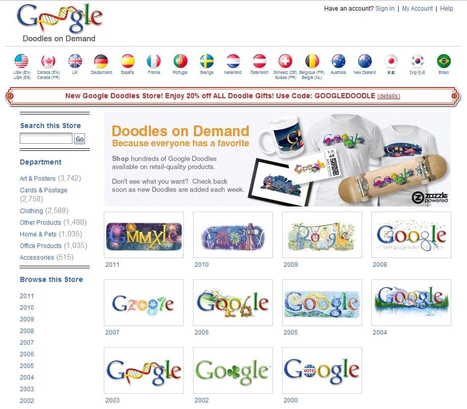 Google a lansat recent un nou site de prezentare a celor peste 1000 de doodle-uri care au înfrumuseţat prima pagină a motorului de căutare încă din 1998. Cu această ocazie, compania lui Larry Page a deschis şi un magazin dedicat.