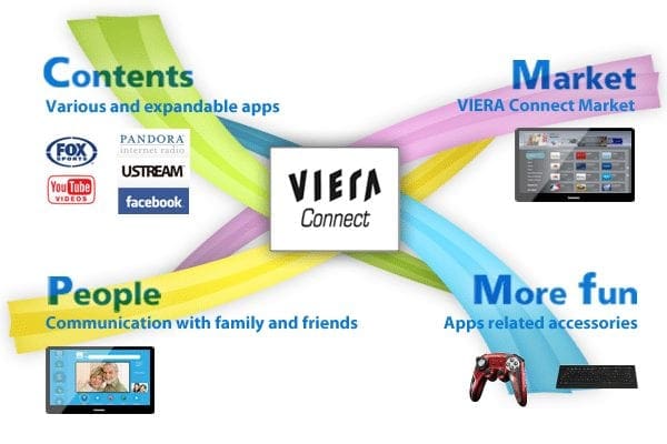 Viera Connect este platforma IPTV proprietară Panasonic ce permite utilizatorilor de televizoare HDTV cu VIERA Connect, playere Blu-ray şi sisteme Home Theater să acceseze o gamă largă de conţinut de internet, video-on-demand şi aplicaţii variate, de la ştiri la fitness, reţele sociale şi jocuri online.