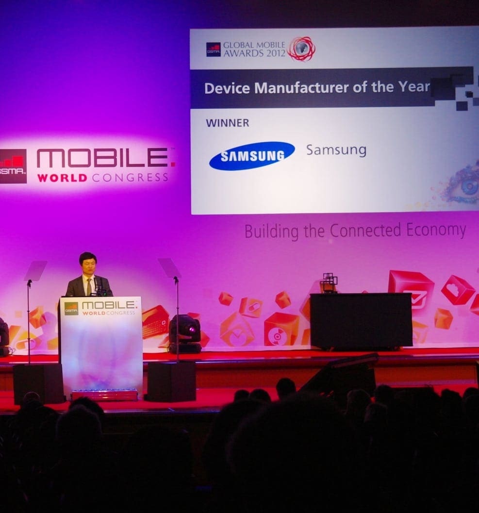 Compania coreeană Samsung a primit în timpul evenimentului Mobile World Congress premiul „Device Manufacturer of The Year”. Distincţia a fost acordată de către GSMA, gazda târgului de telefoane mobile de la Barcelona.