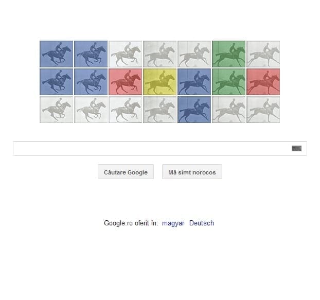 Google celebrează 182 de ani de la naşterea fotografului printr-un doodle pe pagina principală ce prezintă galopul unui cal, printr-o serie de imagini animate.