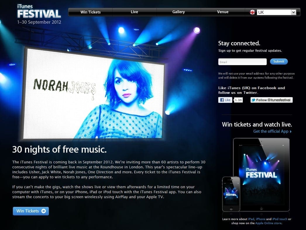 Apple a anunţat data la care va avea loc festivalul anual iTunes. În perioada 1-30 septembrie, Apple va organiza în clădirea Roundhouse din Londra un festival cu peste 60 de artişti, printre care Usher, Jack White şi Norah Jones.
