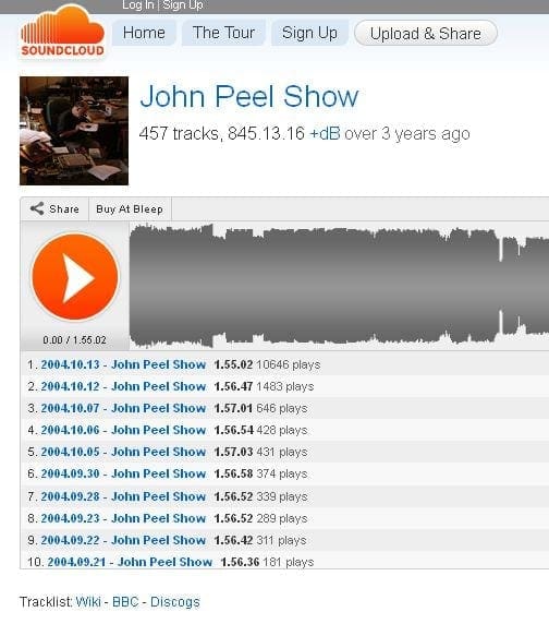 În timp ce persoanele din spatele platformei The Space încarcă pe internet colecţia impresionantă de albume pe care o deţinea John Peel, un fan britanic a decis să posteze pe contul lui de Soundcloud un număr de 457 emisiuni integrale realizate de celebrul DJ. Printre artiştii care au fost invitaţi la John Peel Show se numără Dead Can Dance, Faust, Can, Roy Orbison sau New Order.