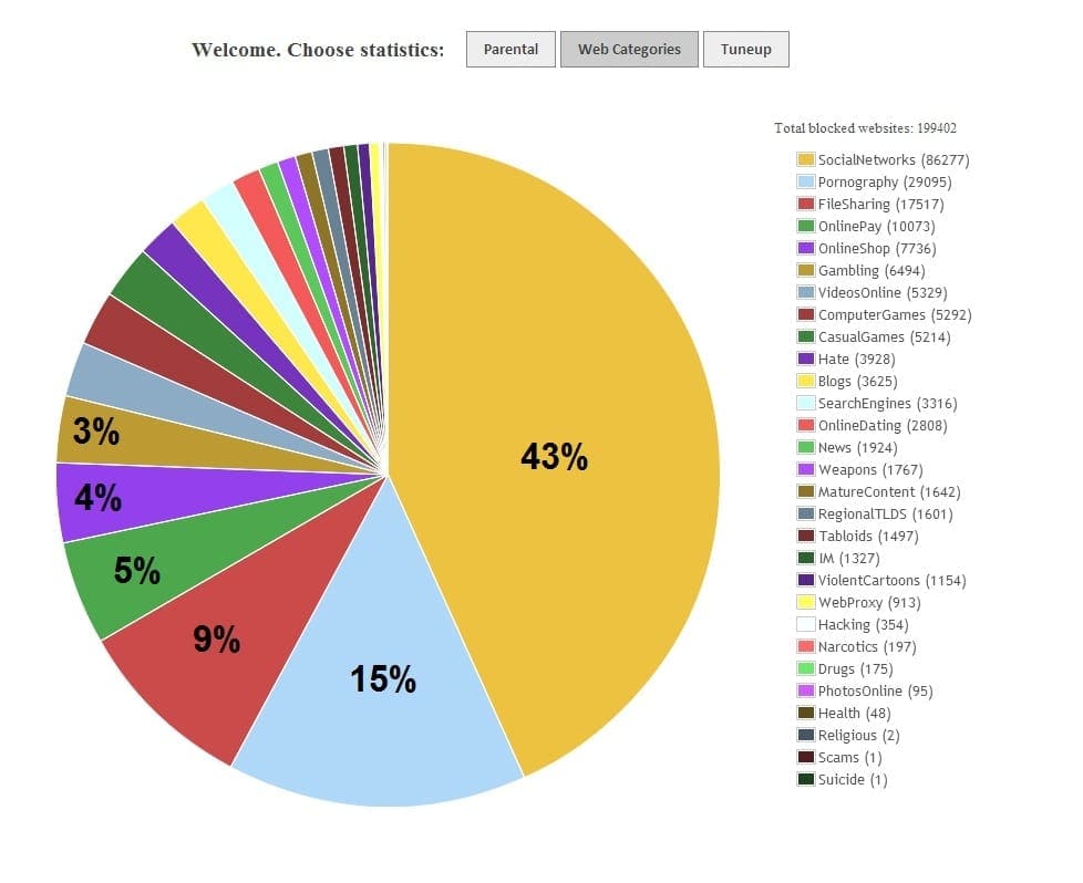 Conform unui studiu realizat de Bitdefender pe parcursul a trei luni, cele mai periculoase site-uri pentru un copii sunt, în viziunea părinţilor, cele de social media şi cu conţinut pornografic. Cele două categorii de site-uri reprezintă 58% din conținutul blocat prin intermediul soft-ului de control parental.