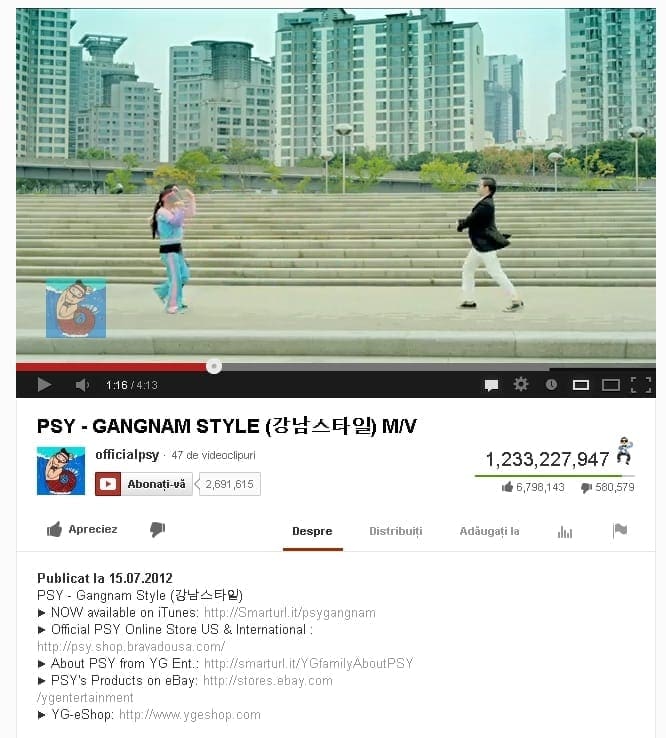 Videoclipul piesei Gangnam Style are momentan peste 120.000.000 de vizualizări pe Youtube. Urmăreşte mai jos cel mai vizionat clip din istoria platformei celor de la Google: