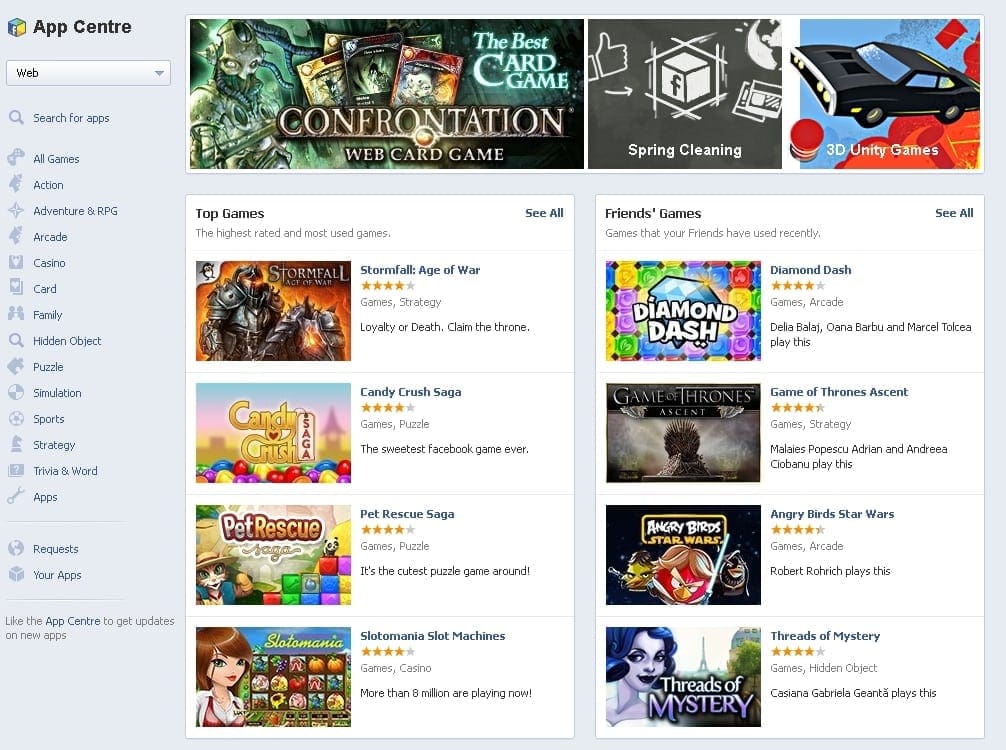 Jocurile din Facebook devin din ce în ce mai populare în rândul utilizatorilor. Conform unui anunţ făcut de reprezentanţii reţelei de socializare în cadrul conferinţei Game Developer Conference din San Francisco, actualmente există peste 250 de milioane de oameni care se joacă pe site-ul creat de Mark Zuckerberg.