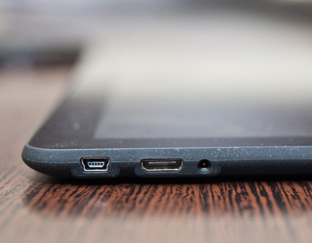 Partea din stanga gazduieste porturile miniHDMI si miniUSB si mufa pentru incarcare, in timp ce pe dreapta regasim doar slotul pentru card microSD. Pe muchia de sus intalnim butonul Power si butoanele pentru controlul volumului, microfonul, jack-ul de 3.5 mm pentru casti si slotul pentru cartela SIM.