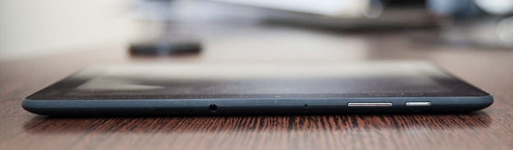 Cu o greutate de doar 680 de grame si o grosime de 10,5 milimetri, tableta vine cu un design bine integrat si o constructie robusta. Capacul din spate este dintr-un plastic cauciucat mat si ofera o aderenta buna, in timp ce partea din fata este ocupata in totalitate ecranul cu rezolutie 1280 x 800 pixeli.