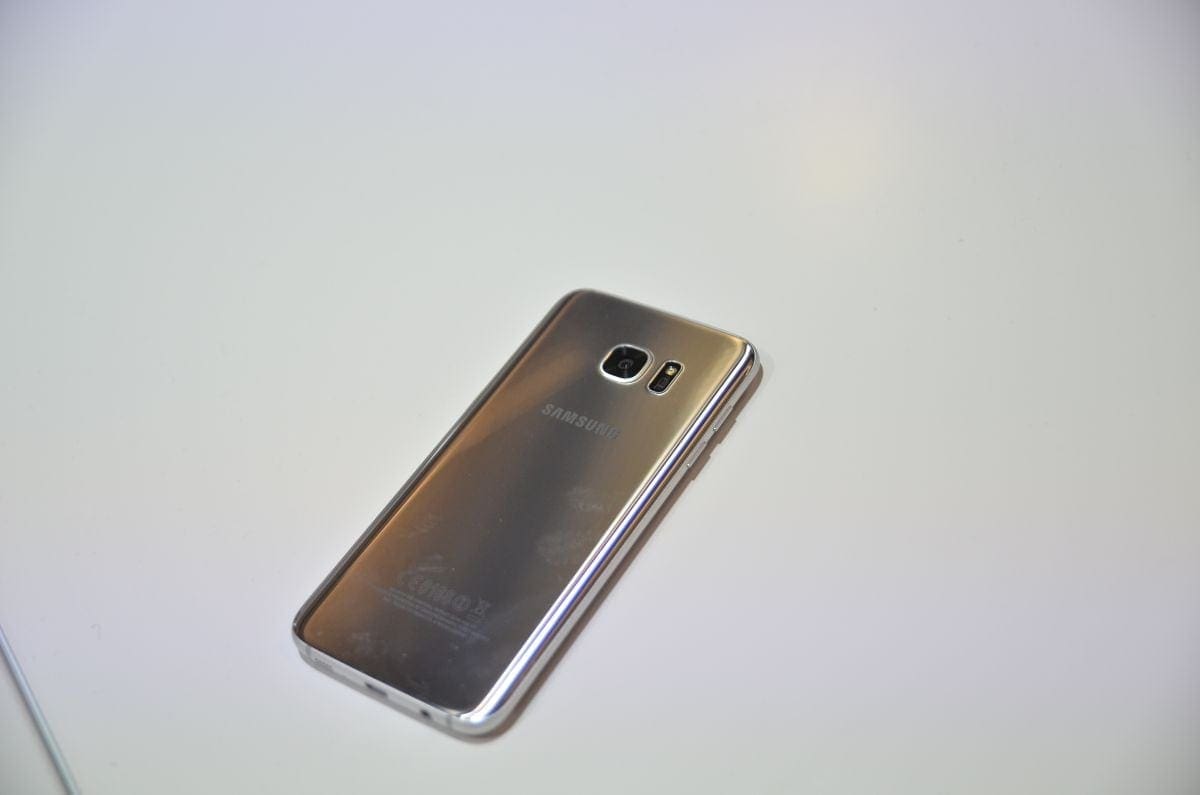 Camera a văzut un regres în numărul de megapixeli, de la 16 megapixeli pe care îi avea modelul S6 s-a trecut la 12 megapixeli, dar discutăm despre pixeli mai mari și noi tehnologii care ajută procesorul de imagine să captureze imagini mai bune și mai rapide, chiar și în condiții mai slabe de iluminare. Diafragma are o deschidere de f1.7 microni, iar pixeli captează mai multă lumină, în timp ce tehnologia dual pixel utilizează două foto diode pentru focalizarea rapidă.