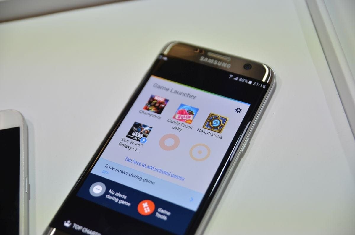 Tot la capitolul îmbunătățiri pentru jocuri vine și noul Game Launcher, o funcționalitate la nivel software care permite o eficiență de consum mai bună. Game Launcher poate controla rezoluție și rata de refresh a jocului pentru a salva baterie, iar o altă caracteristică importantă a noului lansator de jocuri este posibilitatea de a opri notificările atunci când te joci. La lansarea unui joc se găsește un buton de setări în partea din stânga, jos, care permite comutarea între on/off a sistemului de notificări, permite blocarea butoanelor Recent și Back în timp ce te joci, minimizarea unui joc fără a pierde acțiunea la revenirea în el, precum și posibilitatea de a face o captură de ecran sau o înregistrare.