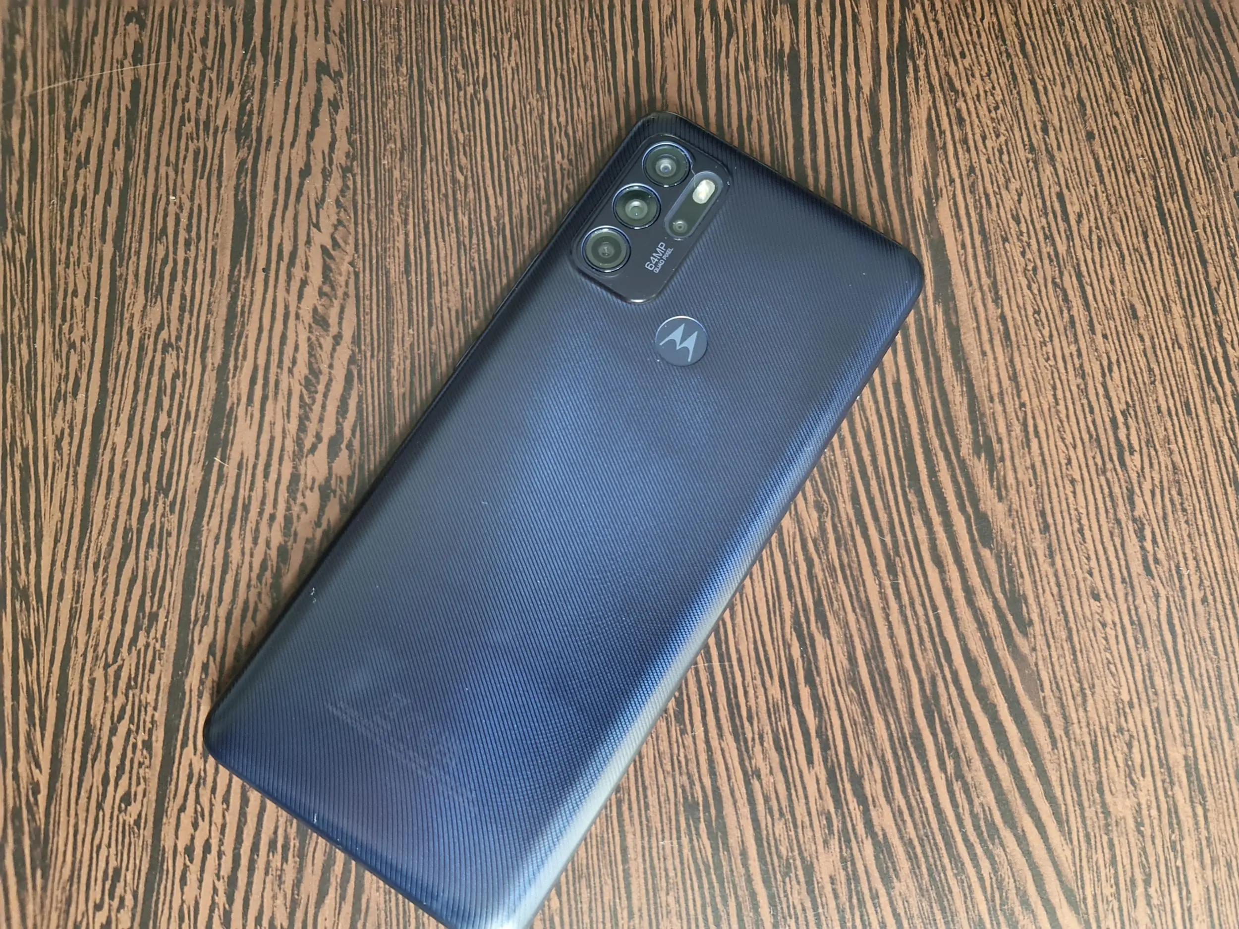 Moto g60s are un design simplu, asemănător cu celelalte dispozitive Motorola din zona entry-level – ecran mare, de 6,8 inci în cazul de față, cu cadru și spate din plastic, destul de gros (9,6mm) și puțin peste 200 de grame ca greutate. În termeni de protecție, la fel ca în cazul altor device-uri, Motorola numește acest design ca fiind „water repellent”. Sunt două versiuni de culoare, Inked Blue și Iced Mint, iar noi am primit-o pe prima dintre ele, care este practic un bleumarin foarte închis, care tinde spre negru.