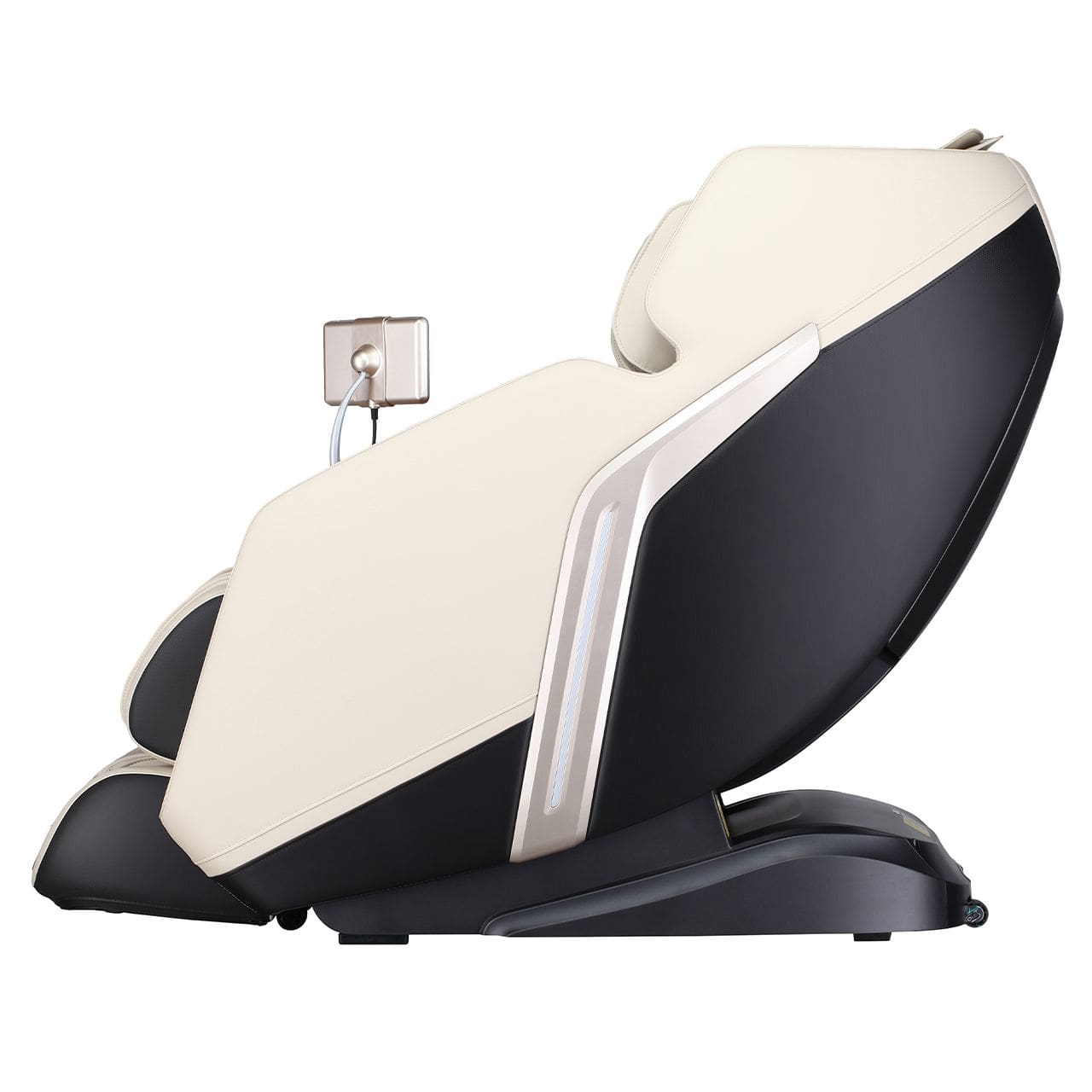 Scaunul arată excelent, iar controlul se realizeză din telecomandă sub formă de tabletă sau de pe suportul de mână din partea dreapta, care are o serie de butoane. Tot aici se găsește și un port USB cu ajutorul căruia îți vei putea încărca telefonul. Tableta de control este plasată pe dreapta, susținută de un suport ușor înălțat și care permite ajustarea și orientarea în toate pozițiile. Scaunul are un suport de picioare care are și rol de masaj și poate fi ajustabil cu până la 16 centimeri pentru a se potrivi și celor mai înalți. Are perne de aer care te prind în jurul gambelor, iar în zona tâlpilor se găsesc rolele de masaj și nu trebuie să uit faptul că și această zonă poate fi încălzită terapeutic.