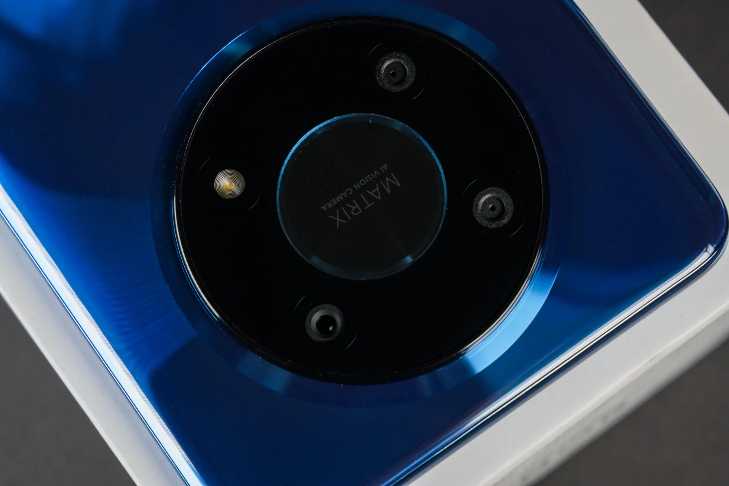 Magic 4 lite vine în culorile titanium silver, midnight black și ocean blue, aceasta din urmă fiind și unitatea mea de teste, pe care o remarci prin aspectul colorat. Frontal se remarcă ecranul, cu o bărbie în partea de jos și o cameră perforată sus. Întors pe spate se remarcă monoblocul de trei senzori așezați într-un inel circular care depășește ușor nivelul carcasei și pe care găsim inscripția Matrix AI Vision Camera, deci ne promite încă din start o cameră echipată cu tehnologie AI care să recunoască obiecte sau să îmbunătățească parametrii.