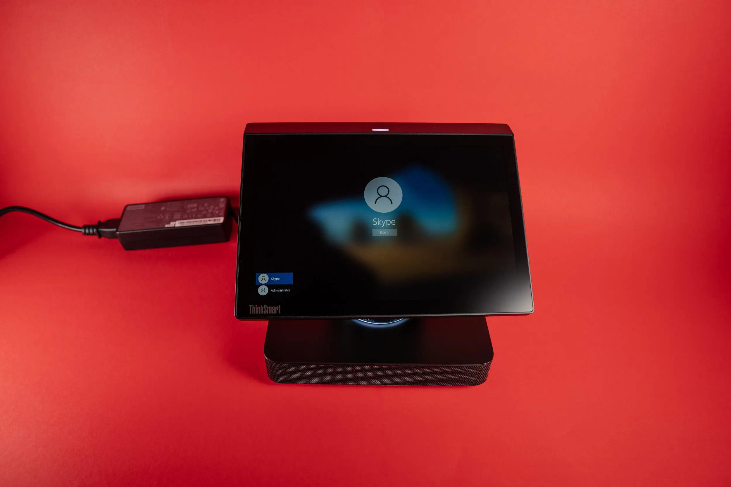 În ceea ce privește display-ul lui ThinkSmart Hub, avem aici un ecran de 10,1 inch cu coating antiglare setat din fabrică la rezoluție Full-HD (1080p), și care este capabil de o luminozitate de 320 de niți. Desigur, dacă e să îl comparăm cu alte device-uri mainstream, nu vom fi atât de impresionați, însă având în vedere că vorbim despre o soluție B2B, în principal, nici nu e nevoie de așa ceva. Și un alt gimmick care mi-a plăcut este faptul că ecranul se poate roti și ajusta în funcție de preferințele personale.