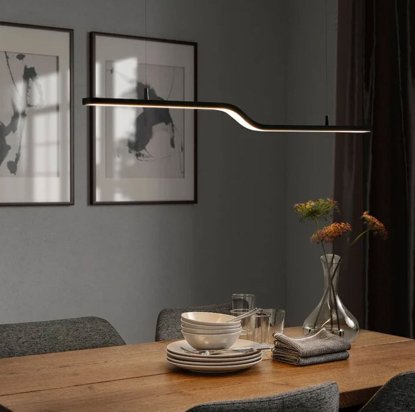 Lampa de podea PILSKOTT are o bază din beton şi aluminiu. Oferă 14.5W de putere şi de un buton dimmer integrat. Cablul său de alimentare are 2 metri lungime. Lampa Pendant oferă output de 16.5W şi măsoară 97 x 4 cm. Vine cu o aplică specială, sau mai degrabă o modalitate minimalistă de a se monta suspendată pe tavan. Încinta sa e fabricată din aluminiu negru.