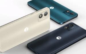 Motorola Moto E13 vine cu un preţ de 119.99 euro şi are ca selling point bateria generoasă, de 5000 mAh. Aduce şi suport Dolby Atmos şi o cameră cu funcţionalitate AI. E subţire şi uşor şi oferă certificare IP52, ceea ce înseamnă că va rezista la apă şi praf, dar mai degrabă la stropiri totuşi. Vine în 3 nuanţe: Cosmic Black, Creamy White şi Aurora Green. Are un look mai degrabă sobru şi pătrăţos.