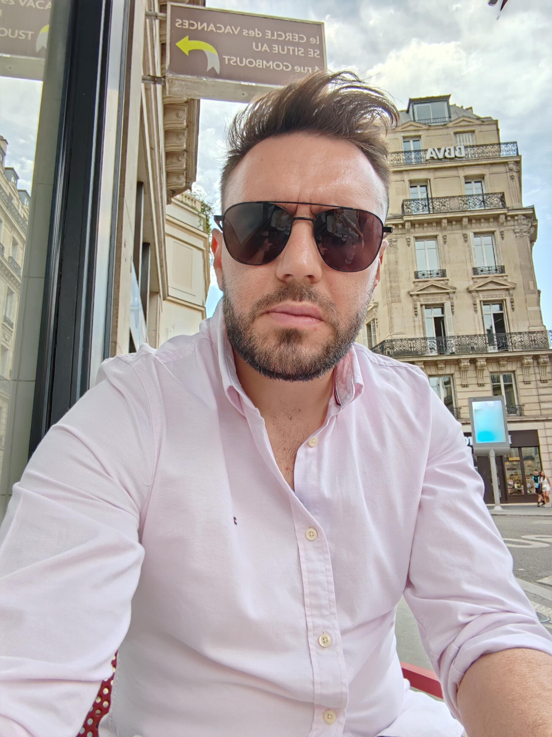 Folosirea modului portret vine la pachet cu un bokeh foarte puternic, care blurează tot ceea ce se află în spatele subiectului. Decuparea e foarte bună, nu prea găsești zone ale subiectului care să fie out of focus, iar nivelul de detalii surprins este remarcabil, datorită celor 200MP de pe principală. Poți observa lucruri foarte fine, precum cusăturile dintr-o cămașă, iar tonurile pielii sunt și ele foarte bine surprinse, cu tot cu micile variații pe care le are aceasta.