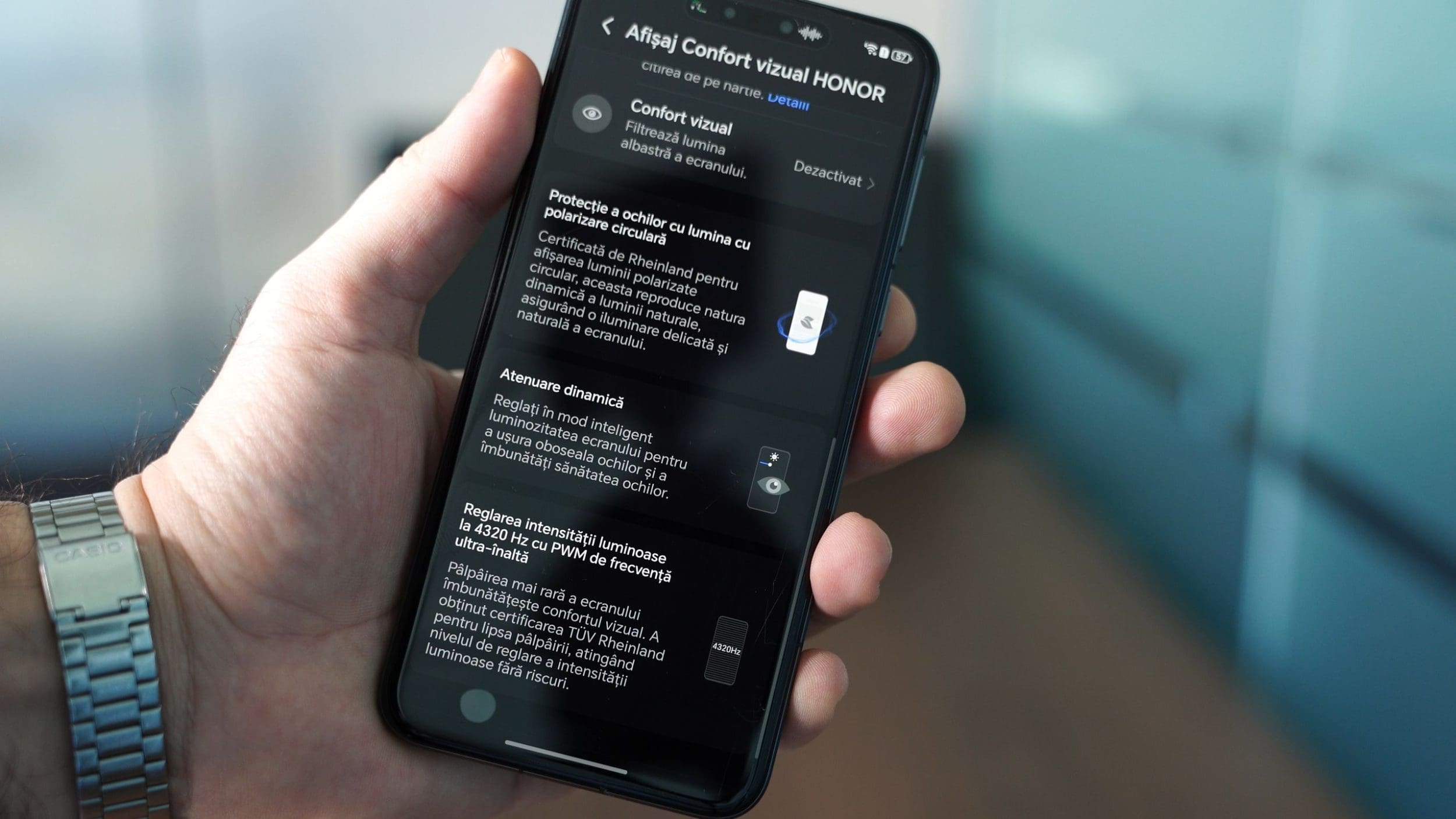 Ecranul rămâne unul de top, cu multe funcții de protecție a vederii