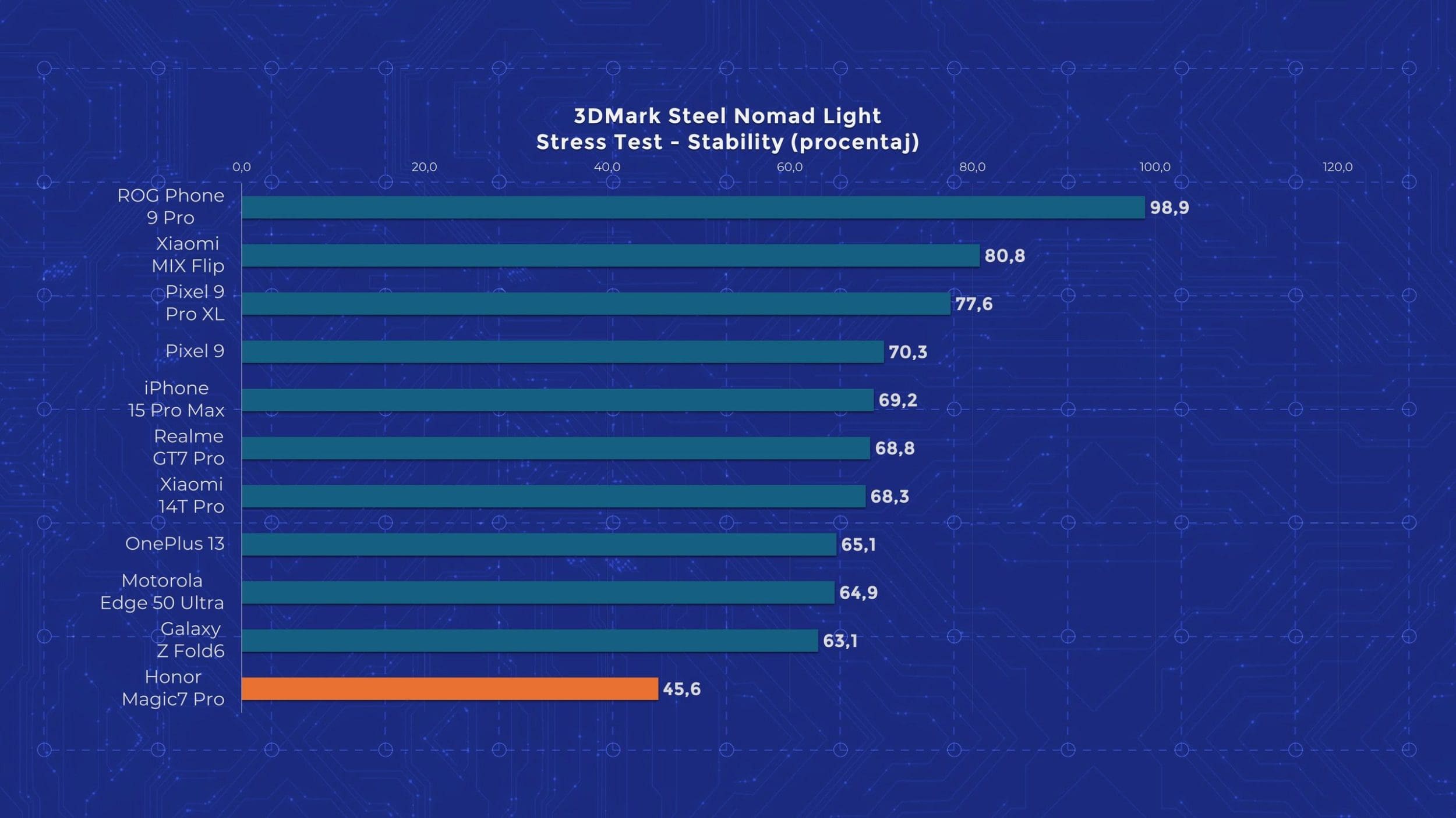 Aparent telefonul, se supraîncălzește și închide aplicația de test, dar testul de stres Steel Nomad Light poate fi dus la bun sfârșit. Având în vedere că în majoritatea testelor telefonul oferă rezultate în limitele așteptărilor, tind să cred că avem parte de o problemă de software. Vom reveni cu teste noi în primul comparativ care va include telefonul pentru a confirma dacă problemele s-au rezolvat.