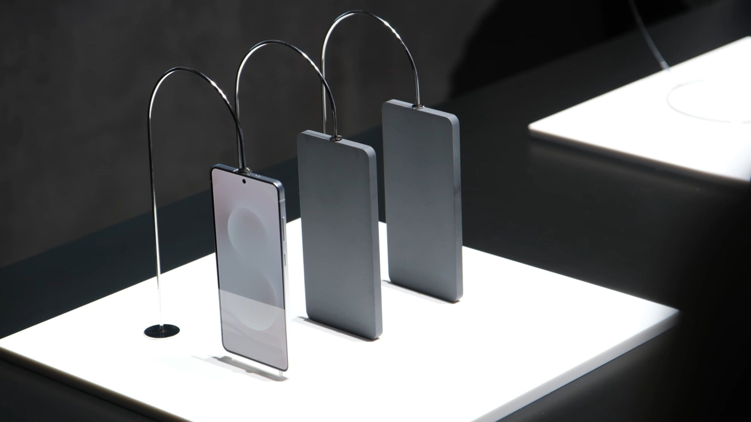 Telefonul a fost afișat în cadrul evenimentului pentru a fi admirat, dar nu a fost disponibil pentru a fi încercat. Pare mai degrabă că ceea ce era prezentat acolo erau fie prototipuri foarte timpurii, fie machete. Totuși, putem vedea design-ul telefonului, care… arată ca oricare alt Samsung, dar care vine cu un profil cu aproximativ 1mm mai subțire. Asta înseamnă că au fost făcute câteva compromisuri, dintre care unele sunt logice, iar altele evidente.