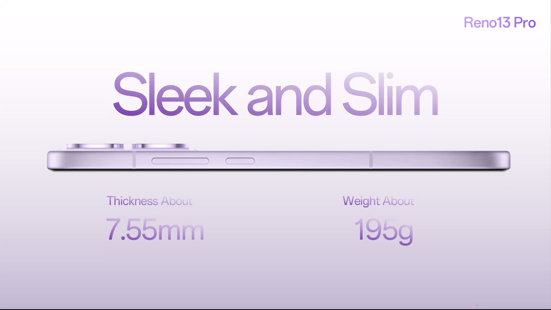 Modelul Reno13 Pro este modelul cel mai performant din gamă, cel care beneficiază de toate avantajele seriei de mid-range-uri de la Oppo. Acesta se laudă, în primul rând cu un design premium și o construcție de top. La capitolul design, Oppo zice că a realizat o „estetică urbană avangardistă”. Vorbim despre un telefon acoperit cu sticlă care este ușor curbată pe toate marginile pe partea din față, o ramă de aluminiu de jur împrejur și un panel de sticlă plat pe spate, care găzduiește și o insulă de cameră ieșită în relief, fără întreruperi cu o umbră în forma unui fluture atunci când se reflectă lumina în versiunea mov. Există și o versiune neagră pentru cei care vor un design mai simplu.