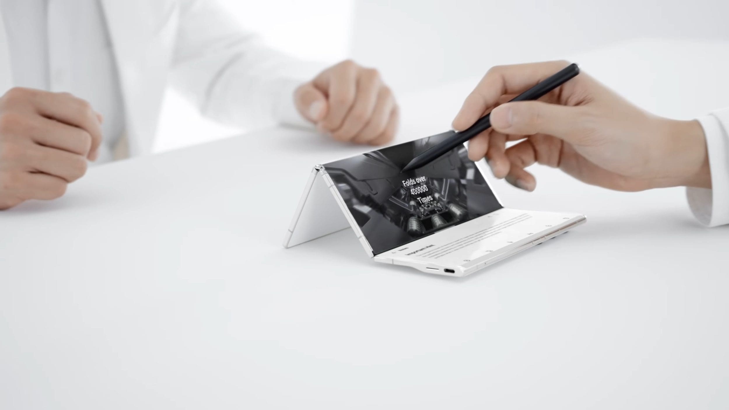 Interesant este că Tecno demonstrează Phantom Ultimate 2 și alături de un stylus, ceva ce nu am văzut până acum în zona dispozitivelor tri-fold.