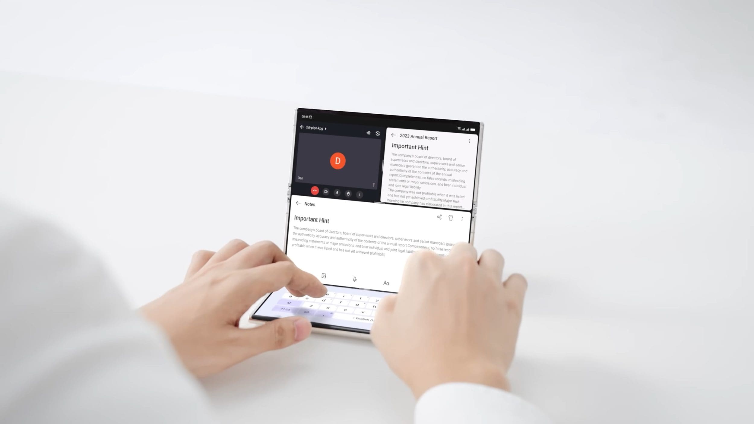 De exemplu, este prezentat un mod în care sunt prezente pe ecran trei aplicații în paralel, ceva ce ar putea fi util pentru cei care vor productivitate avansată. Apoi este prezentat un mod în care două treimi din ecran sunt folosite pe post de display, iar ultima parte este sprijinită de birou și afișează o tastatură, asemeni unui laptop. În cele din urmă vedem un mod de utilizare în stil laptop, care permite colaborare pe două ecrane, într-o manieră nu foarte diferită față de ceea ce am văzut tot la MWC de la Lenovo, care are un laptop cu ecran care se pliază spre spate.