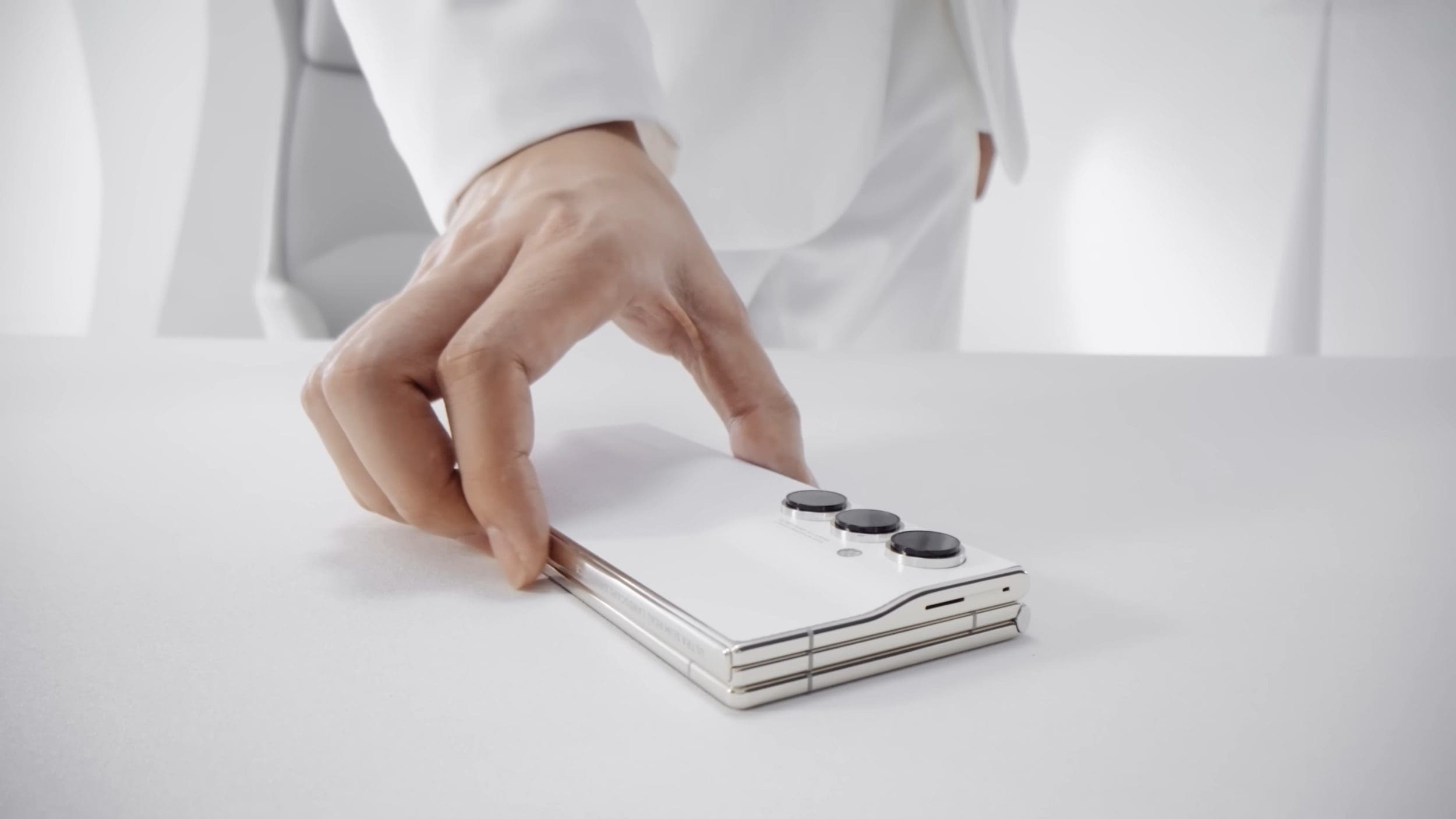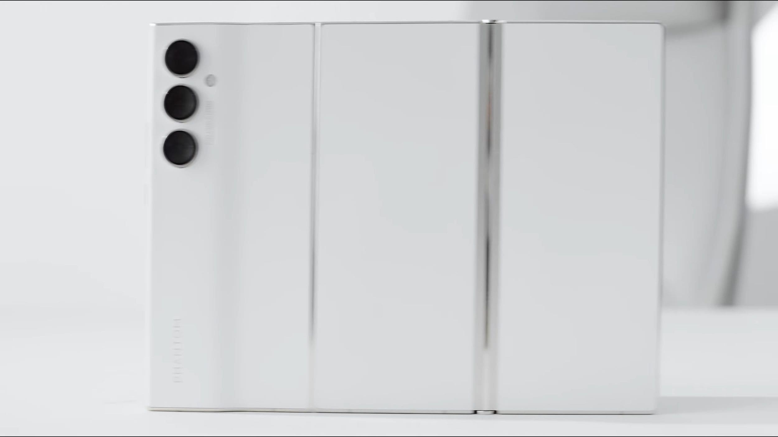 Tecno Phantom Ultimate 2 arată ca un telefon obișnuit atunci când este pliat, fiind echipat cu un sistem cu trei camere pe partea din spate, iar modulul de camere este elegant integrat în design, capacul de pe spate fiind ușor curbat pentru a găzdui acest modul. Având în vedere diferența de grosime în acea zonă, probabil că vorbim despre un sistem de camere semnificativ mai bine dotat decât ce vedem de obicei pe telefoane pliabile și pe tri-fold-ul Mate XT de la Huawei.