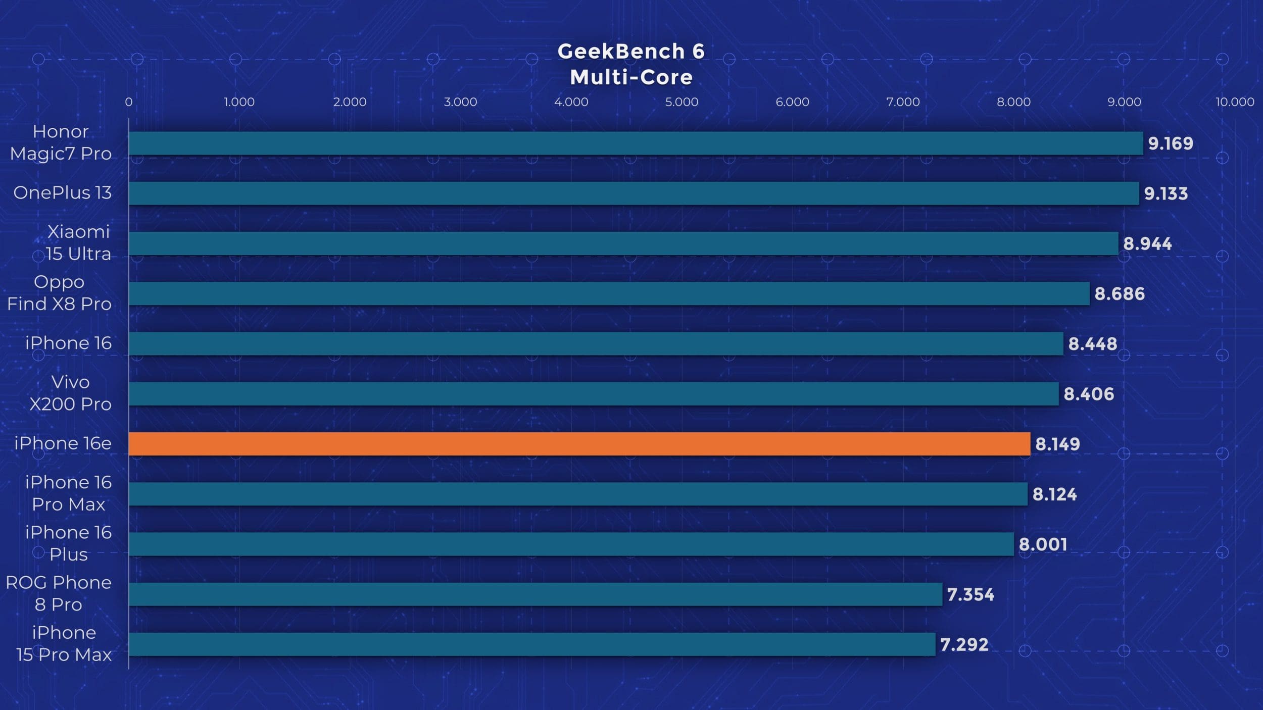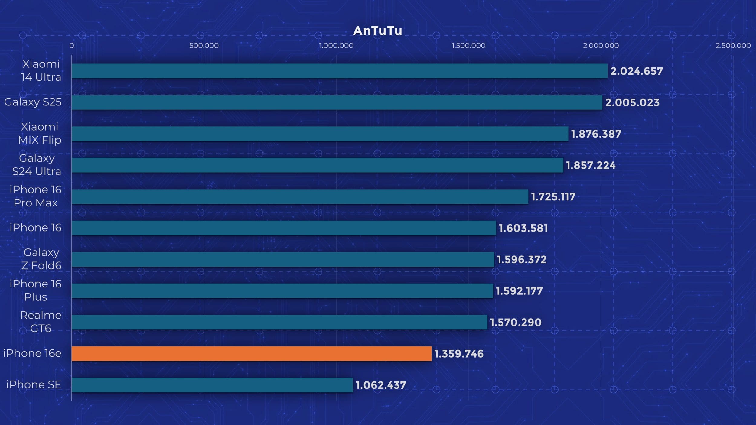 În teste, iPhone 16e este în zona modelelor iPhone 16. Performanța CPU este foarte bună, de nivel flagship, dar pe GPU rămâne în urmă având un nucleu în minus față de 16 și două față de Pro-uri. Vestea bună este că performanța din teste se regăsește și în utilizare, iar stabilitatea performanței este impresionantă, fiind la fel sau chiar mai bună decât pe modelele iPhone 16. Totuși, trebuie să recunosc că telefonul se cam încinge în jocuri.