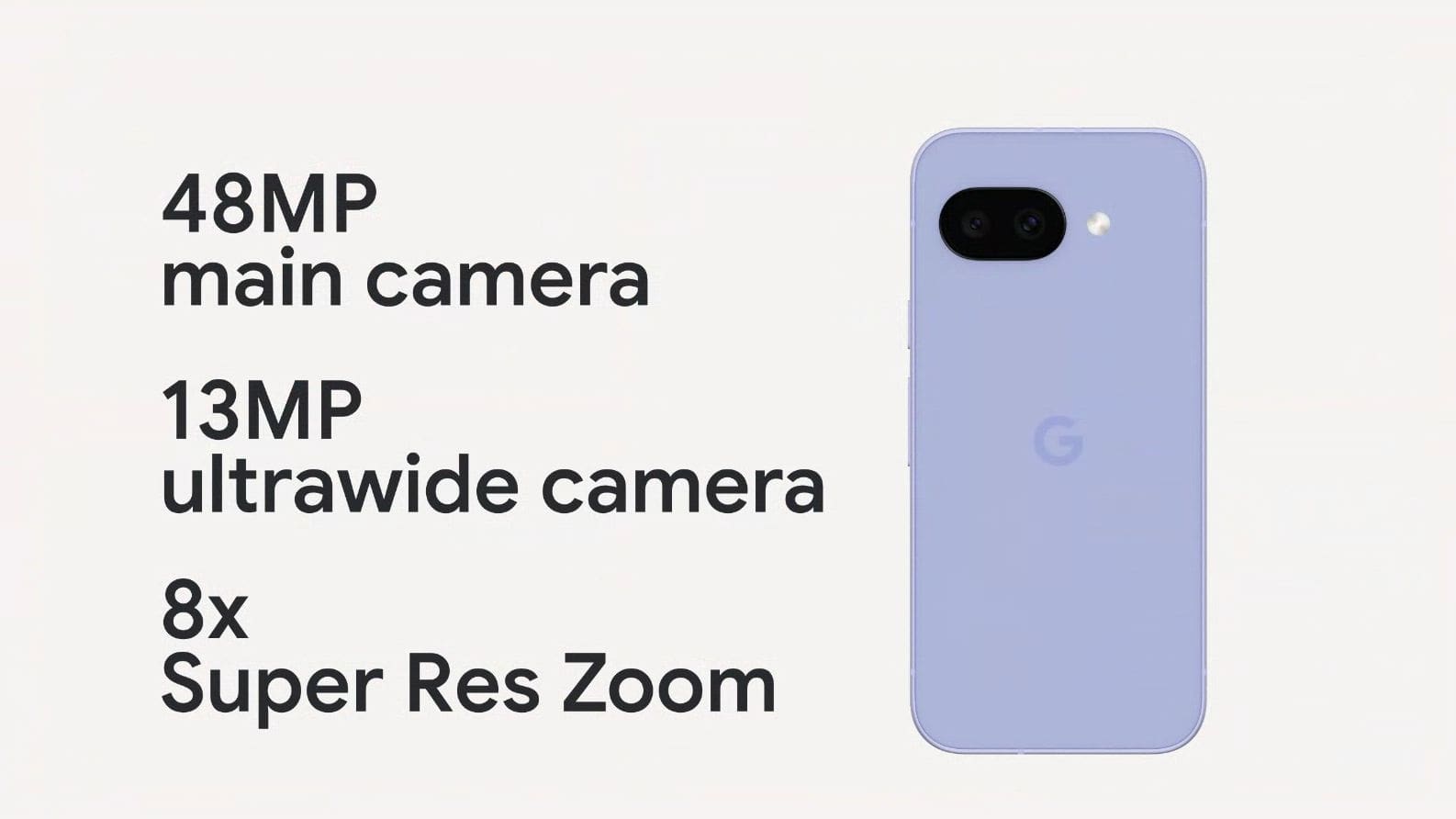 Sistemul de camere este acum aproape plat pe capacul de pe spate, cu doar o mică ramă care iese puțin în relief. Aici sunt găzduiți doi senzori, unul de 48 megapixeli cu lentilă wide și unul de 13 megapixeli cu lentilă ultrawide. Aceste camere vor oferi acces la aceleași funcții de pe Pixel 9, precum Add Me, Best Take, Night Sight și zoom îmbunătățit cu AI până la 8x. Google spune că aceasta ar trebui să fie „cea mai bună cameră la un preț de sub 600 de dolari”. Rămâne de văzut dacă chiar așa este când îl vom testa.