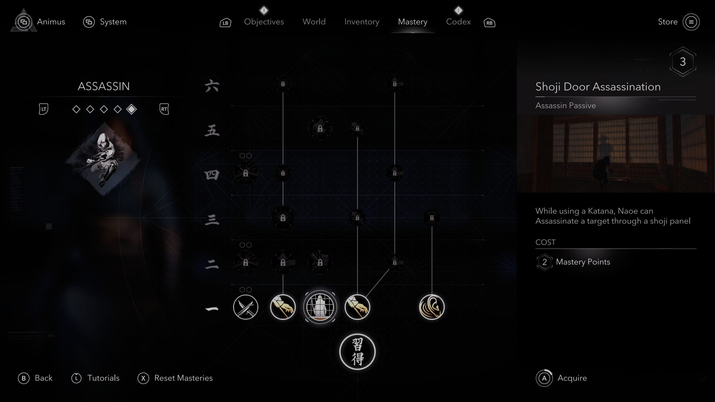 Yasuke, pe de altă parte este un samurai, ceea ce înseamnă că are o rezistență mai mare la atacuri și este și mult mai puternic în confruntări directe. Acesta preferă abordarea directă, fie de la apropiere, fie de la distanță. Producătorii au ales ca doar acesta să beneficieze de un arc cu săgeți sau cu o pușcă „teppo”, utile pentru a păstra distanța față de inamici. Yasuke are abilități limitate însă pentru furișare și cățărare.