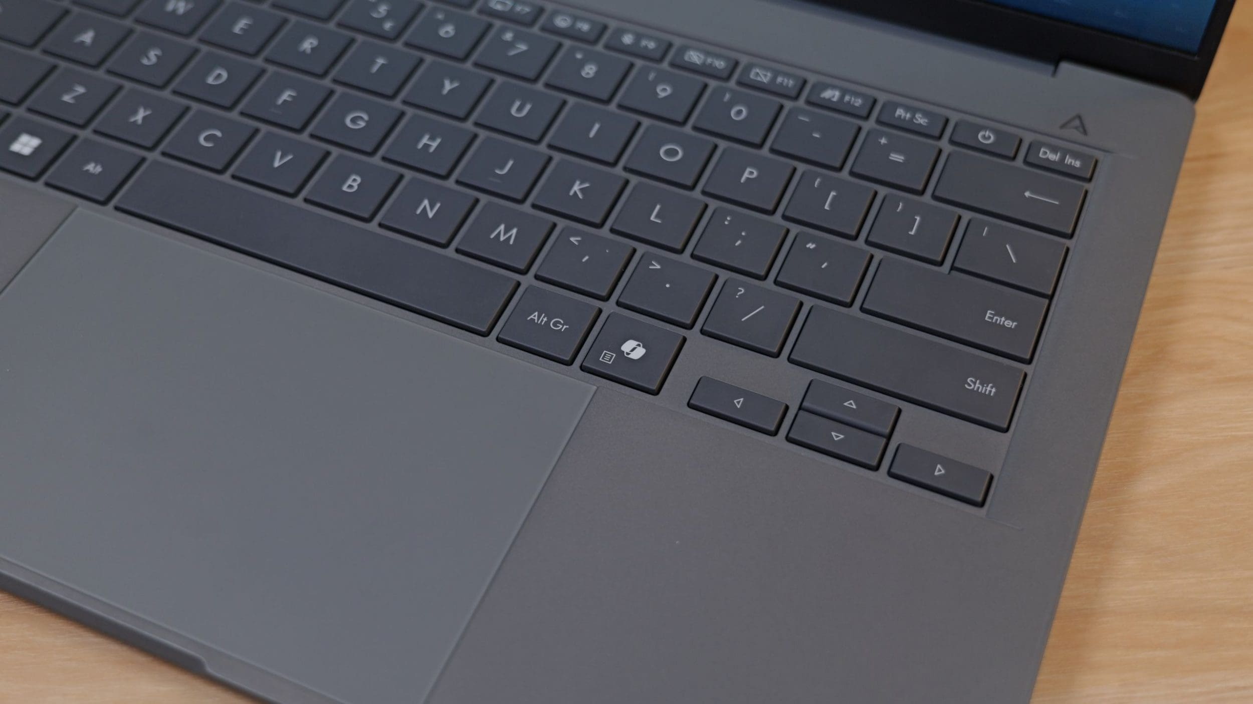 Apoi, avem toate port-urile de care am putea avea nevoie pe un computer mic și ușor, inclusiv HDMI și USB-A. Zenbook A14 vine și cu o tastatură completă, în stilul ASUS clasic, deloc înghesuită și confortabilă de utilizat, cu tot cu iluminare albă. Nici măcar trackpad-ul nu face compromisuri, fiind unul de dimensiuni generoase pentru un astfel de dispozitiv.