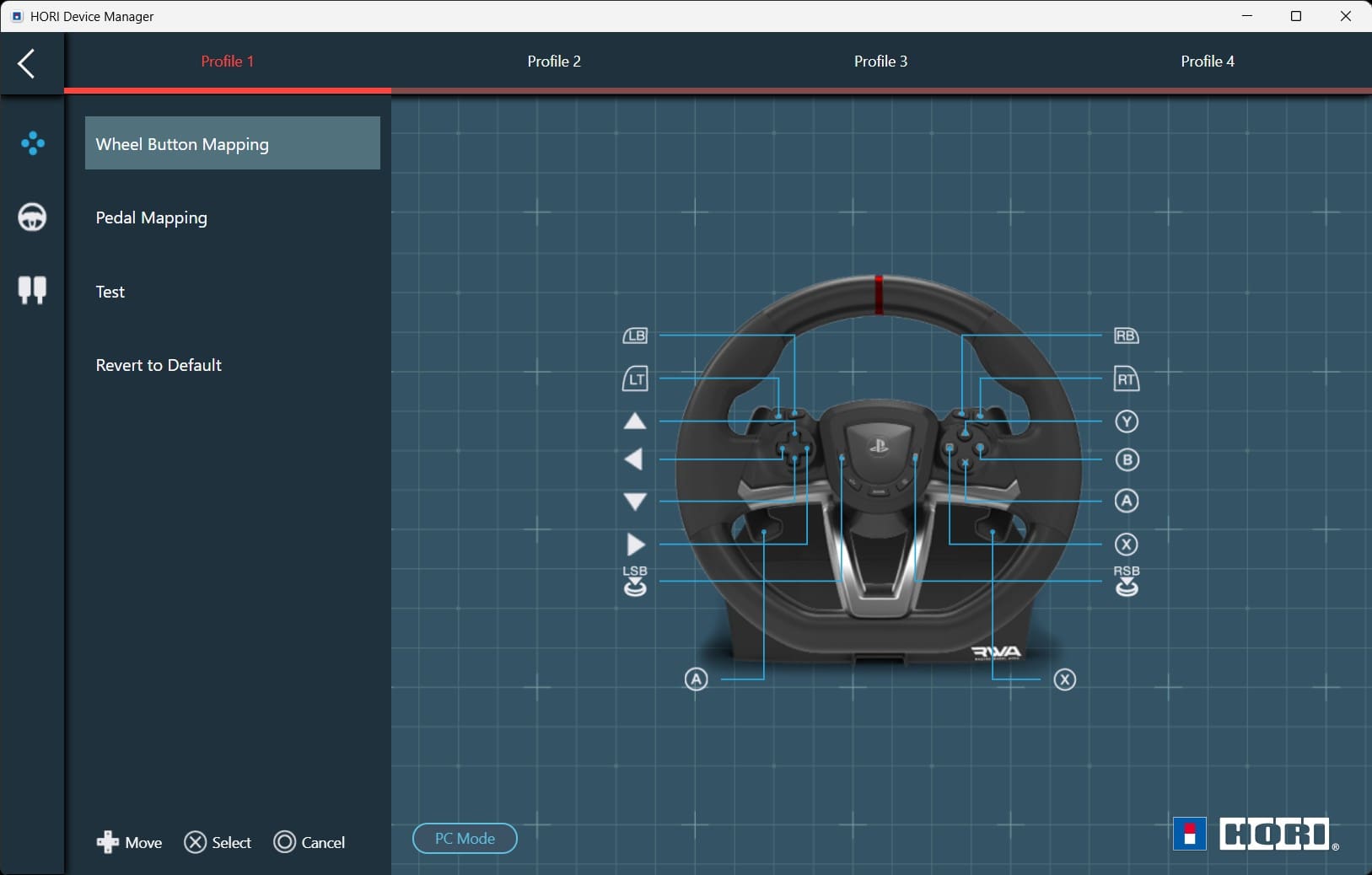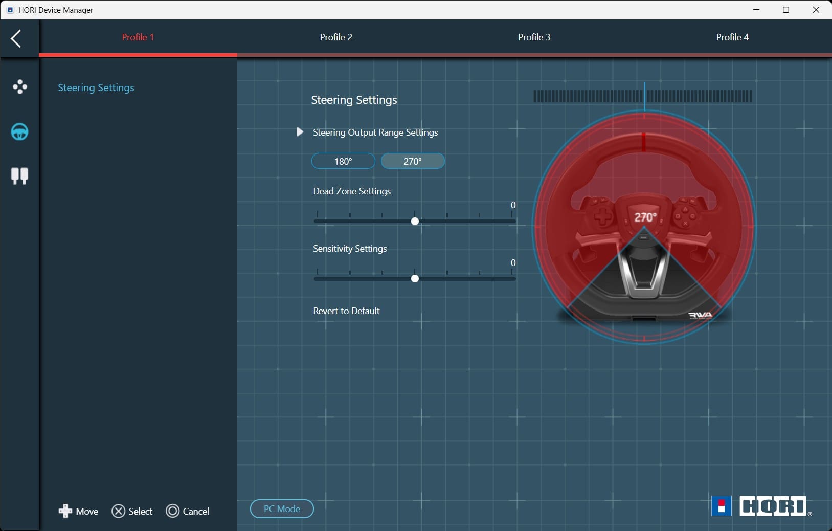 Pe PC nu este nevoie decât să conectezi cablul la computer și să intri în oricare joc de curse. Există și o aplicație numită Device Manager care permite configurarea volanului, dar aceasta este complet opțională (disponibilă pe site-ul Hori). Dacă alegi să o descarci și să o instalezi, vei putea configura fiecare buton în parte de pe volan, cât și sensibilitatea pedalelor sau volanului, cât și posibiltatea de a alege sensibilitate la mișcare între 180 și 270 de grade. Poți modifica și setările pentru modurile PlayStation în această aplicație, iar dacă nu vrei să conectezi volanul la un PC pentru modificări, butonul Assign poate fi folosit pentru a modifica funcțiile butoanelor de pe volan. Există instrucțiuni despre cum să faci asta în manualul oficial.
