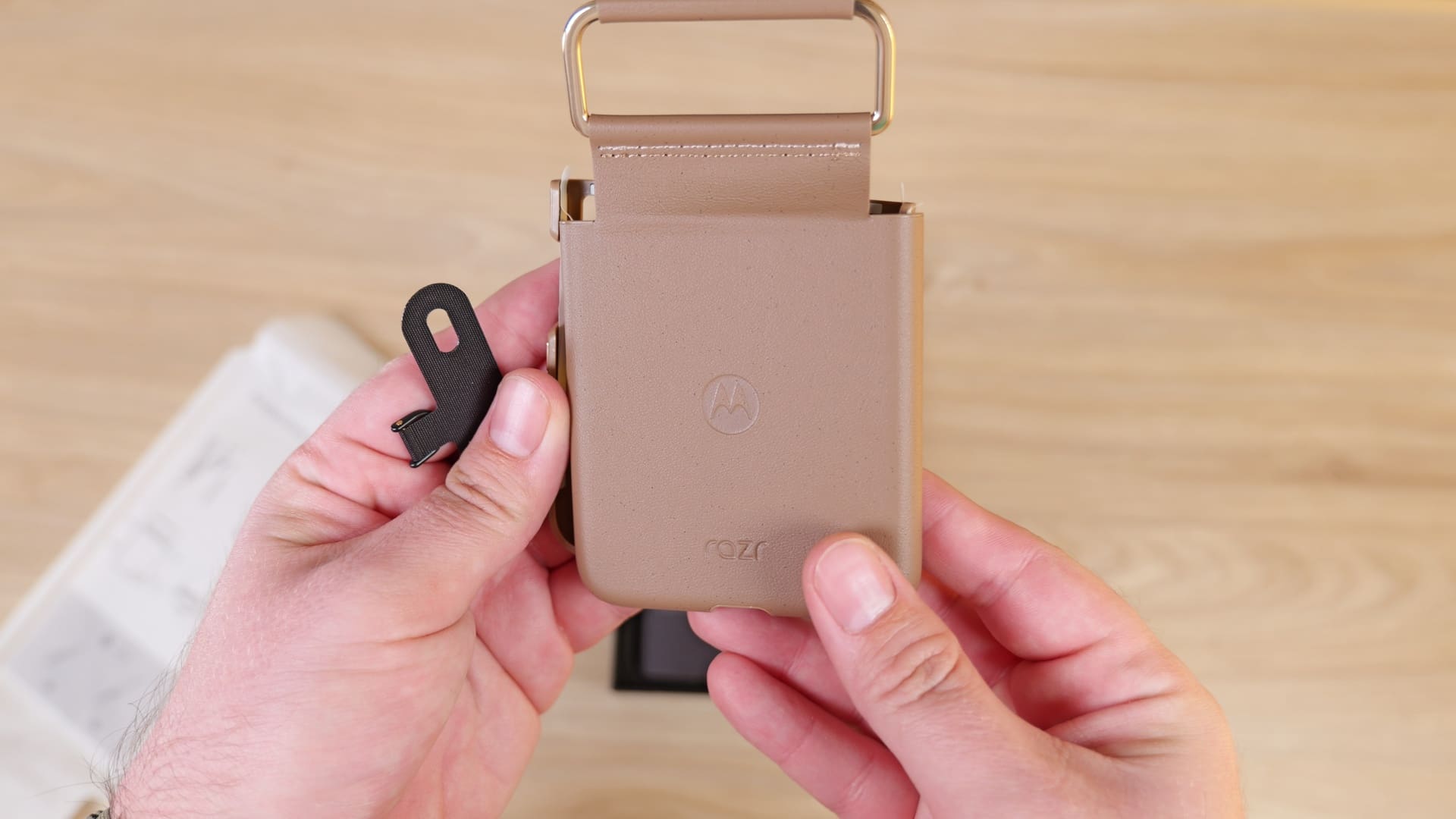 Motorola s-a aliniat la normele UE și nu mai oferă încărcător în pachet, ceea ce era de așteptat în 2025. Totuși, în locul încărcătorului apare o husă din materiale premium (imitație de piele), un bonus binevenit. Husa este în culoarea telefonului și are și o agățătoare. Chiar dacă Motorola se laudă cu rezistență ridicată, tot recomand o husă pentru telefoanele de acest gen, întrucât reparațiile în caz de accident sunt foarte scumpe.