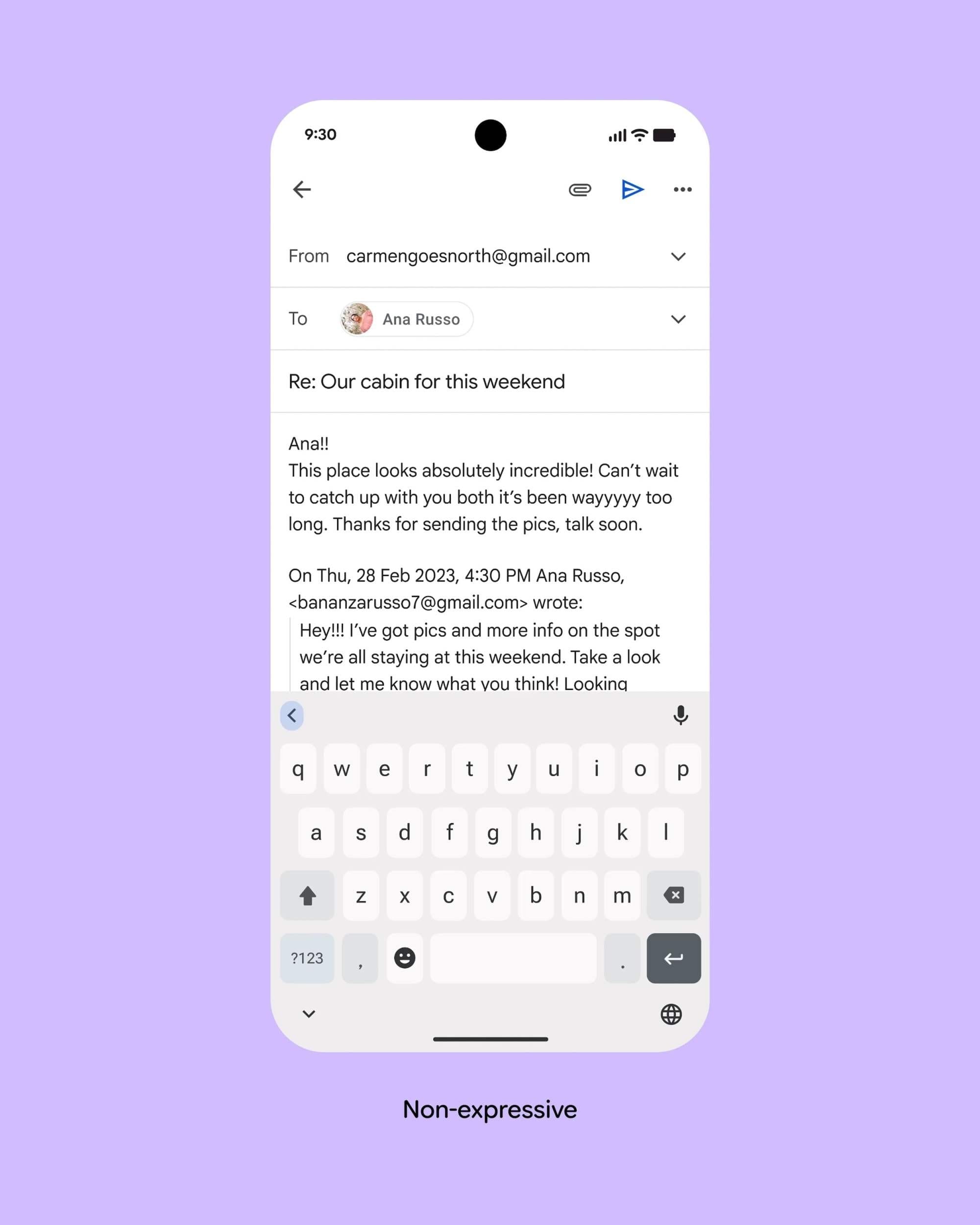 Google spune că noul său design este mai „expresiv”, ceea ce înseamnă că folosește culori, forme și animații pentru a evidenția acțiunile importante și pentru a crea o relație „emoțională” cu interfața. Rămâne de văzut dacă într-adevăr așa va fi. Cu siguranță Google a făcut tot felul de studii în acest sens, însă de multe ori utilizatorii vor ceva cât mai simplu care să își facă treaba în locul unor elemente frumoase care sunt mai greu de folosit.