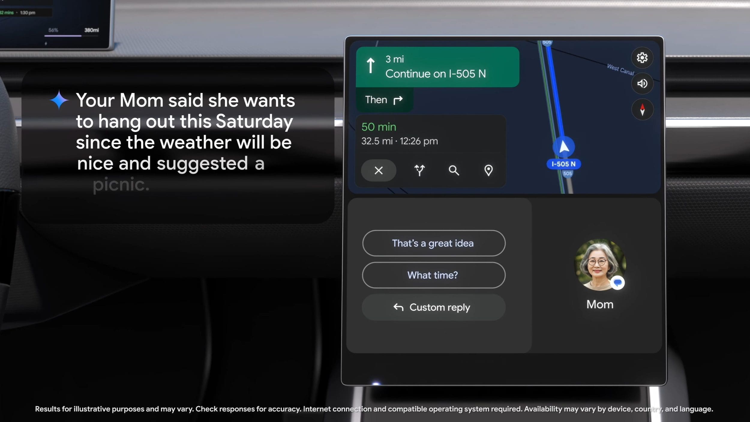 Inclusiv Gemini Live va fi disponibil în mașină, deci vei putea ține conversații vocale cu asistentul. O particularitate a versiunii de mașini pentru Gemini este că va oferi răspunsuri mai scurte.