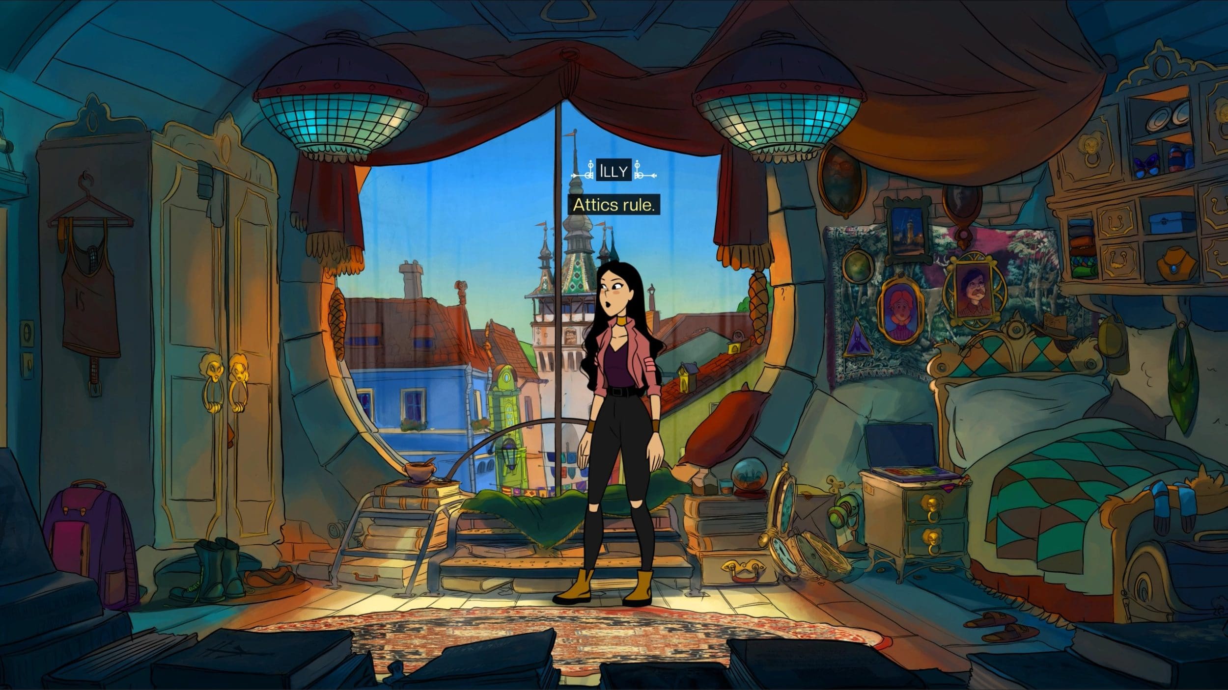 Desigur, în stilul clasic al jocurilor adventure, dar și ale cărților sau filmelor care au loc într-o școală, nu poate să nu își facă apariția o conspirație a unor forțe necunoscute care pun pe toată lumea în pericol, iar numai Ilinca și prietenii săi pot să oprească planurile malefice. Avem puțin din Harry Potter, puțin din Wednesday și foarte multă inspirație autohtonă, cu un mister original care este bine construit și dozat pe parcursul jocului. Scenariul este în general bun, destul de interesant pentru te încuraja vrei să vezi tot timpul ce urmează. Nu vă așteptați însă la un scenariu de Hollywood sau revelații neașteptate. Există destule indicii despre ceea ce se întâmplă de fapt și cred că fanii Stuck in the Attic vor aprecia în mod special anumite secvențe care par să fie realizate doar pentru ei.