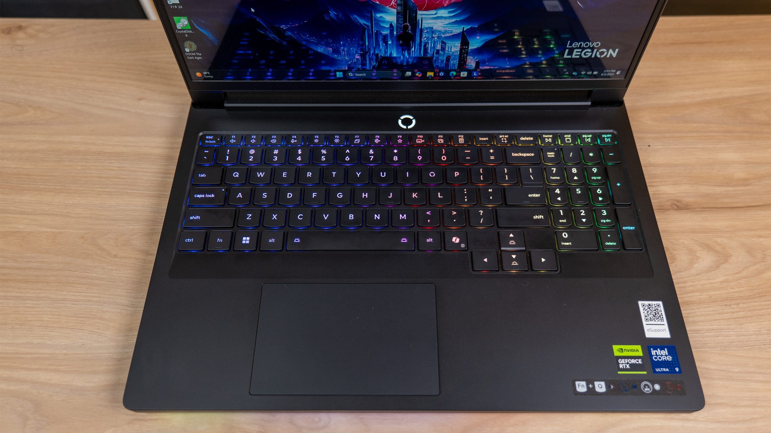 Design-ul simplu este completat de iluminare RGB, care poate fi dezactivată, la nevoie. Avem Logo-ul Legion iluminat pe capacul ecranului, tastatura cu numpad iluminată complet, dar și două zone de iluminare ambientală, pe partea din față și pe cea din spate a laptop-ului. Jocurile de lumini pot fi configurate din aplicația Legion Space, cea care permite și configurarea profilurilor de performanță.