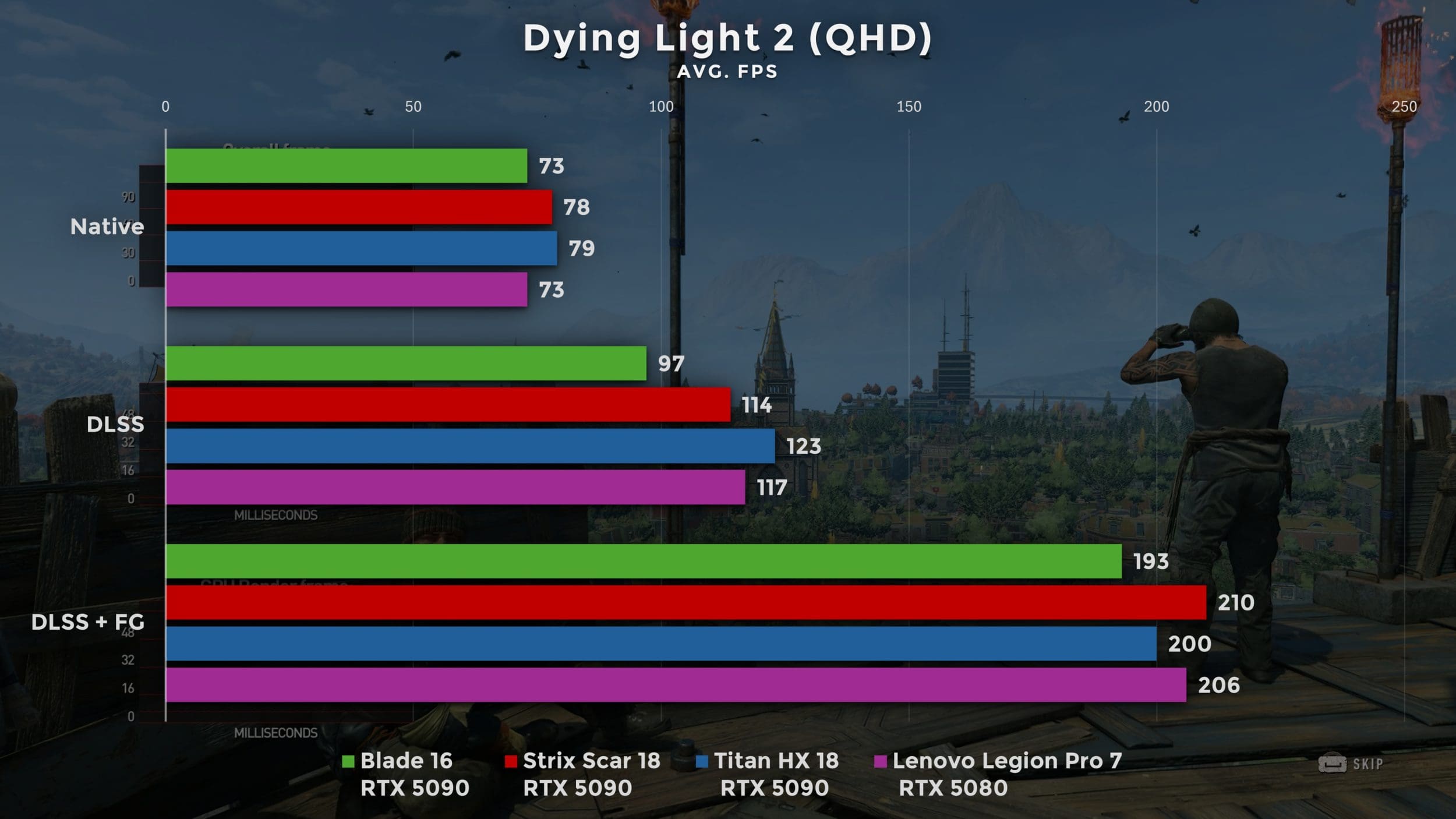 Totuși, suntem tot în zona de 76-77 FPS, performanță foarte bună și fluidă, dar mult sub capabilitățile ecranului acestui laptop, care poate afișa la 240 Hz. Următorul pas în creșterea performanței este DLSS4. Deja, această tehnologie a ajuns la maturitate, și există puține motive să nu o activezi, întrucât asigură un aport garantat de performanță în oricare joc în care este disponibilă.