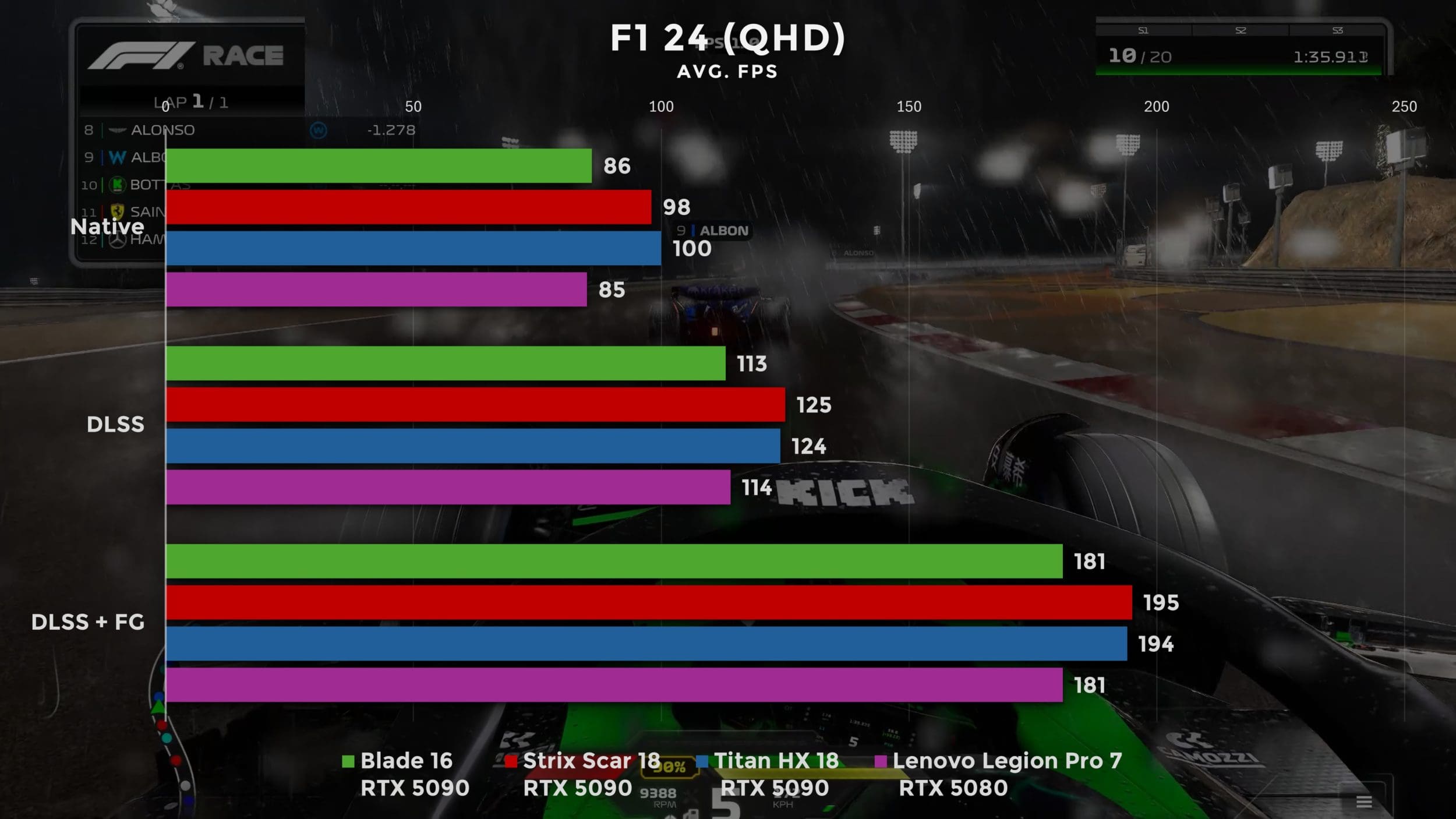 Dar acestea sunt doar cele trei jocuri pe care le-am selectat pentru a demonstra aceste tehnologii. Performanța oferită de GeForce RTX 5080 este mai mult decât respectabilă. Lenovo a reușit ceva ce nu credeam că voi vedea prea curând, optimizând sistemul de răcire pe Legion Pro 7 atât de bine încât de multe ori acest laptop se apropie de performanța unui RTX 5090 Laptop.
