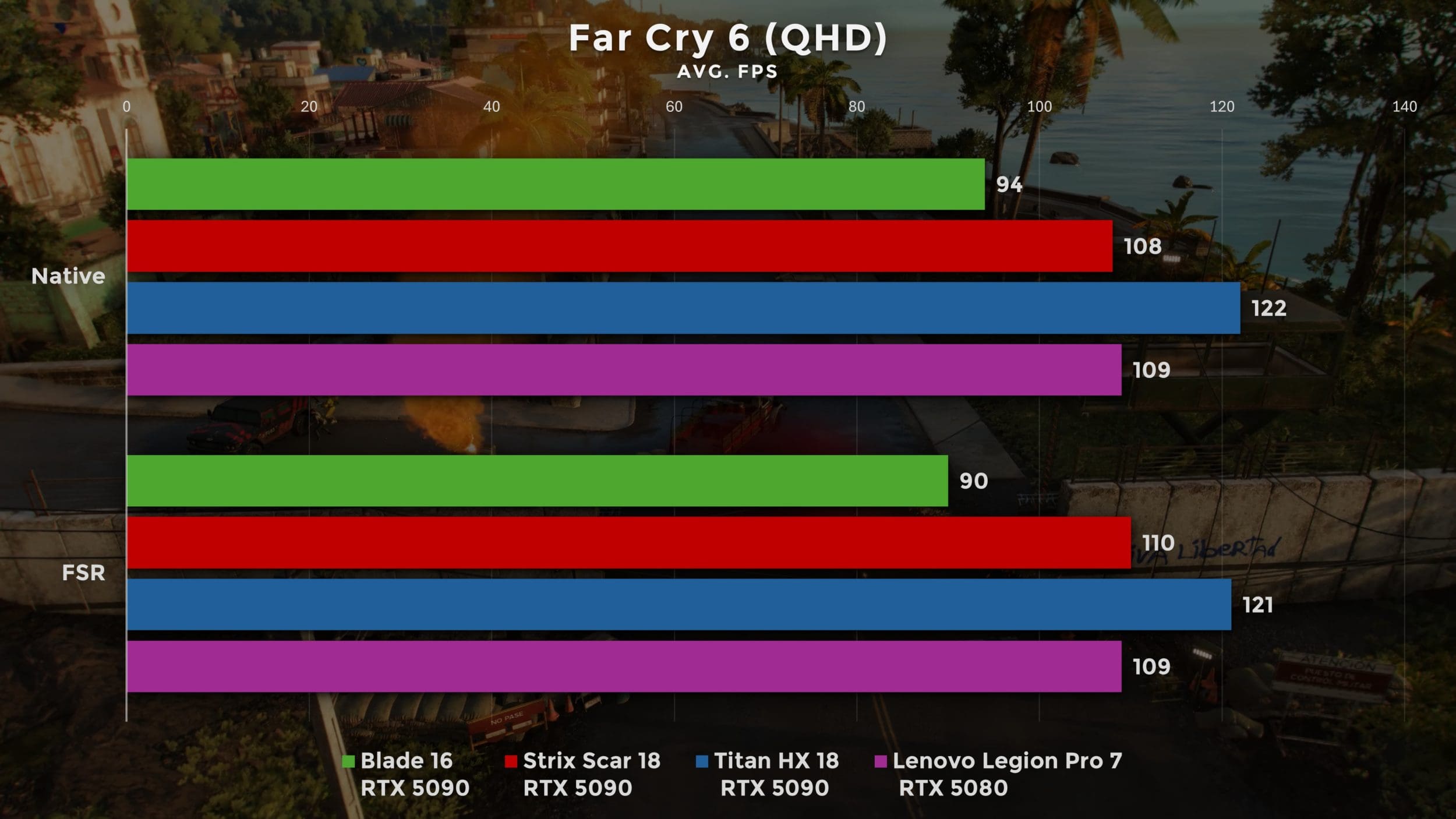 Am realizat teste pe întreaga selecție de 12 titluri testate anterior, atât în QHD, cât și în 4K. Ce-i drept, în 4K Legion Pro 7 rămâne în urmă mai mult, dar în QHD se ține bine în rând cu restul modelelor testate.