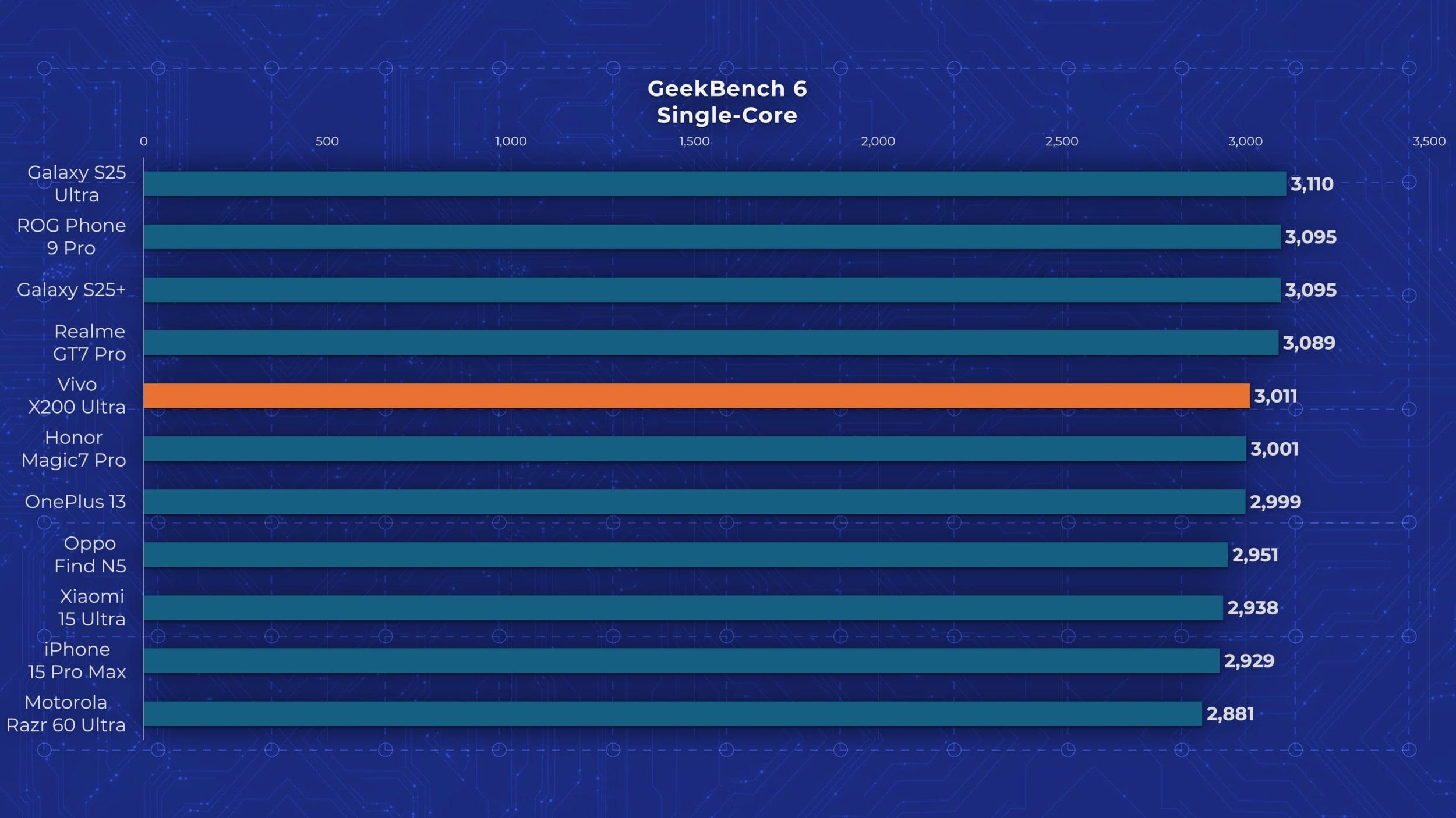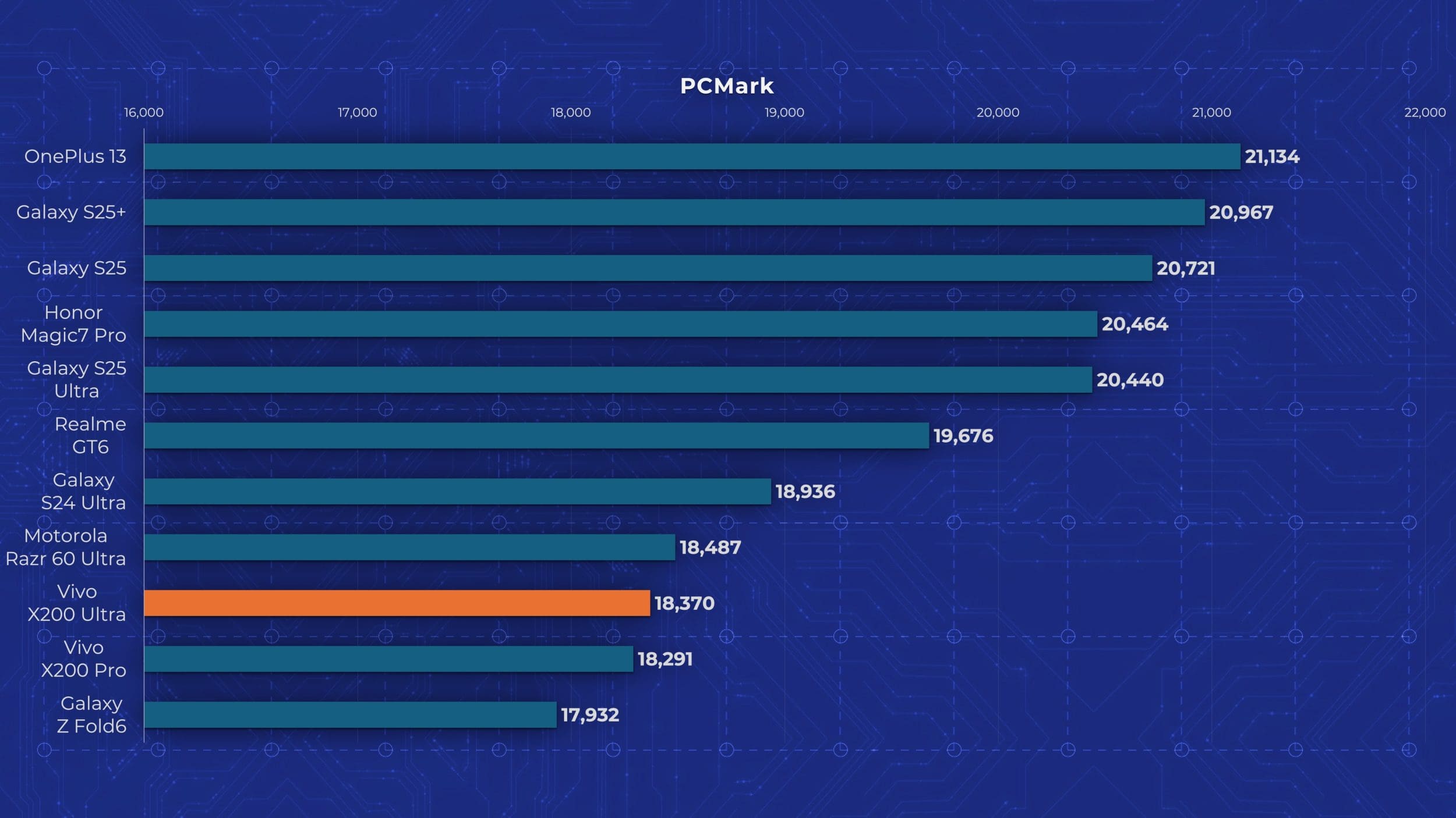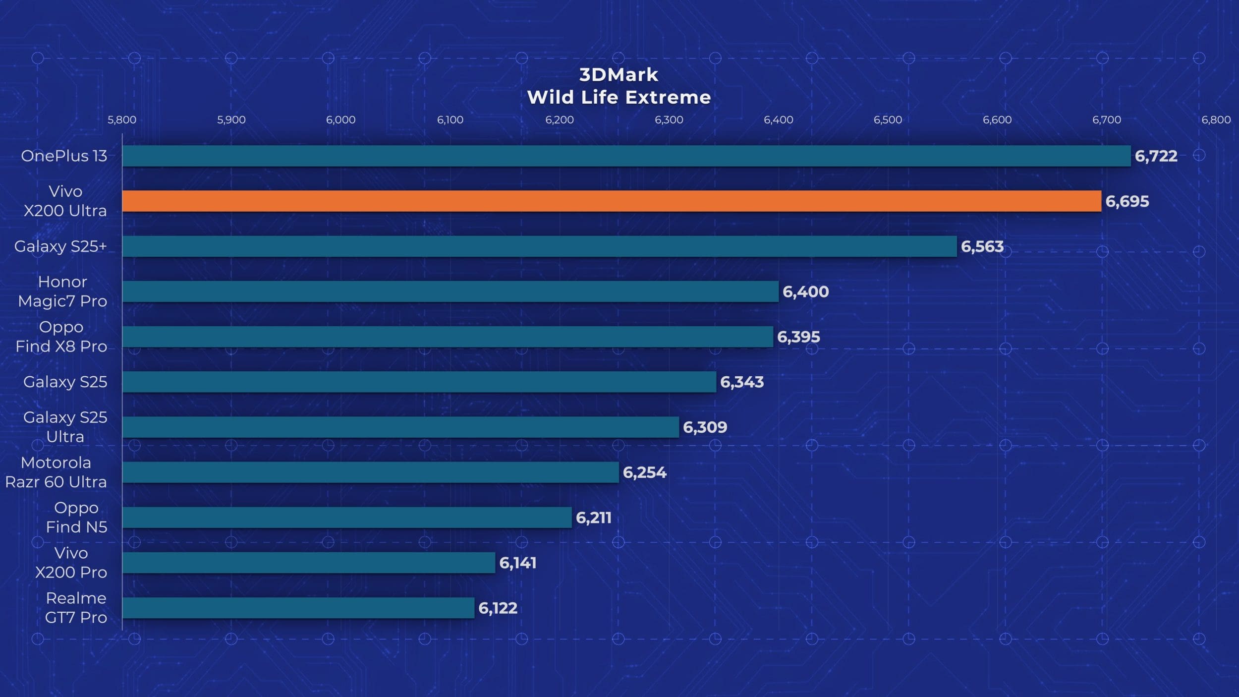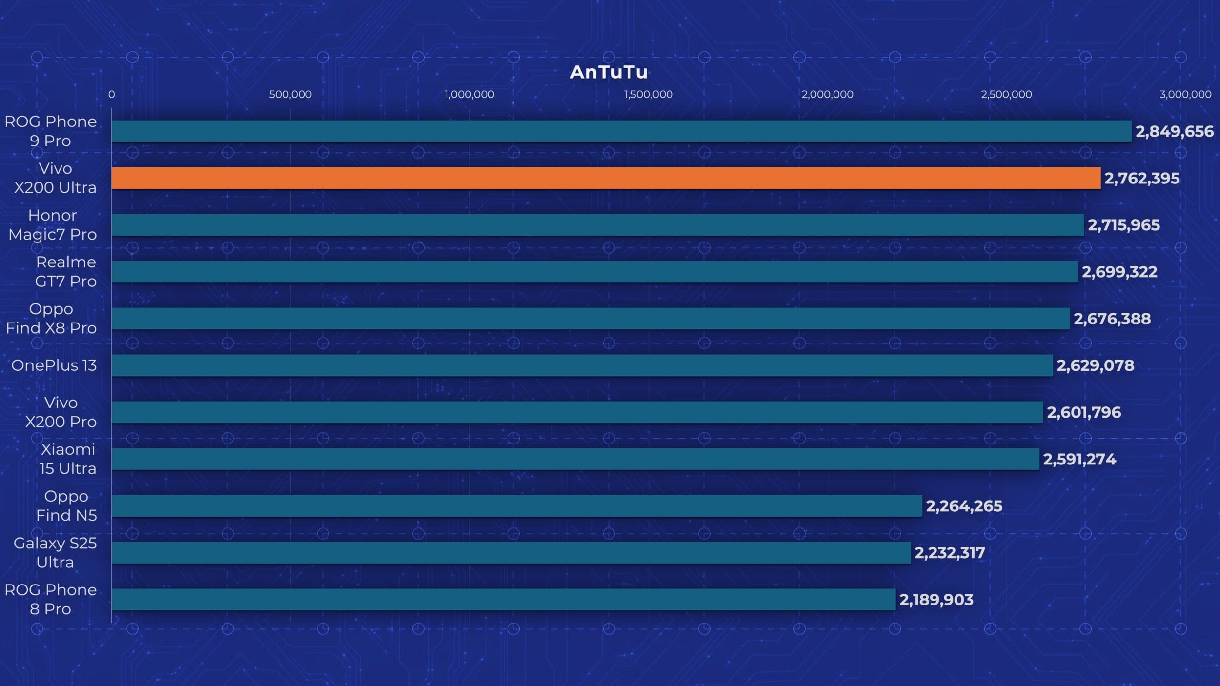Un alt upgrade pe care X200 Ultra îl primește față de modelul Pro este la nivelul procesorului. Vivo a folosit Dimensity 9400 în toamnă, iar acum adoptă Snapdragon 8 Elite. Cam știm la ce să ne așteptăm de la acest cip, întrucât l-am tot testat în diverse implementări. Performanța este de top, vivo X200 Ultra urcând chiar pe locul întâi în anumite clasamente, dar fiind un camera phone, răcirea nu face față prea bine. În testele de stres scade cam la 50%. E ok, ne interesează performanța foto, nu gaming-ul.