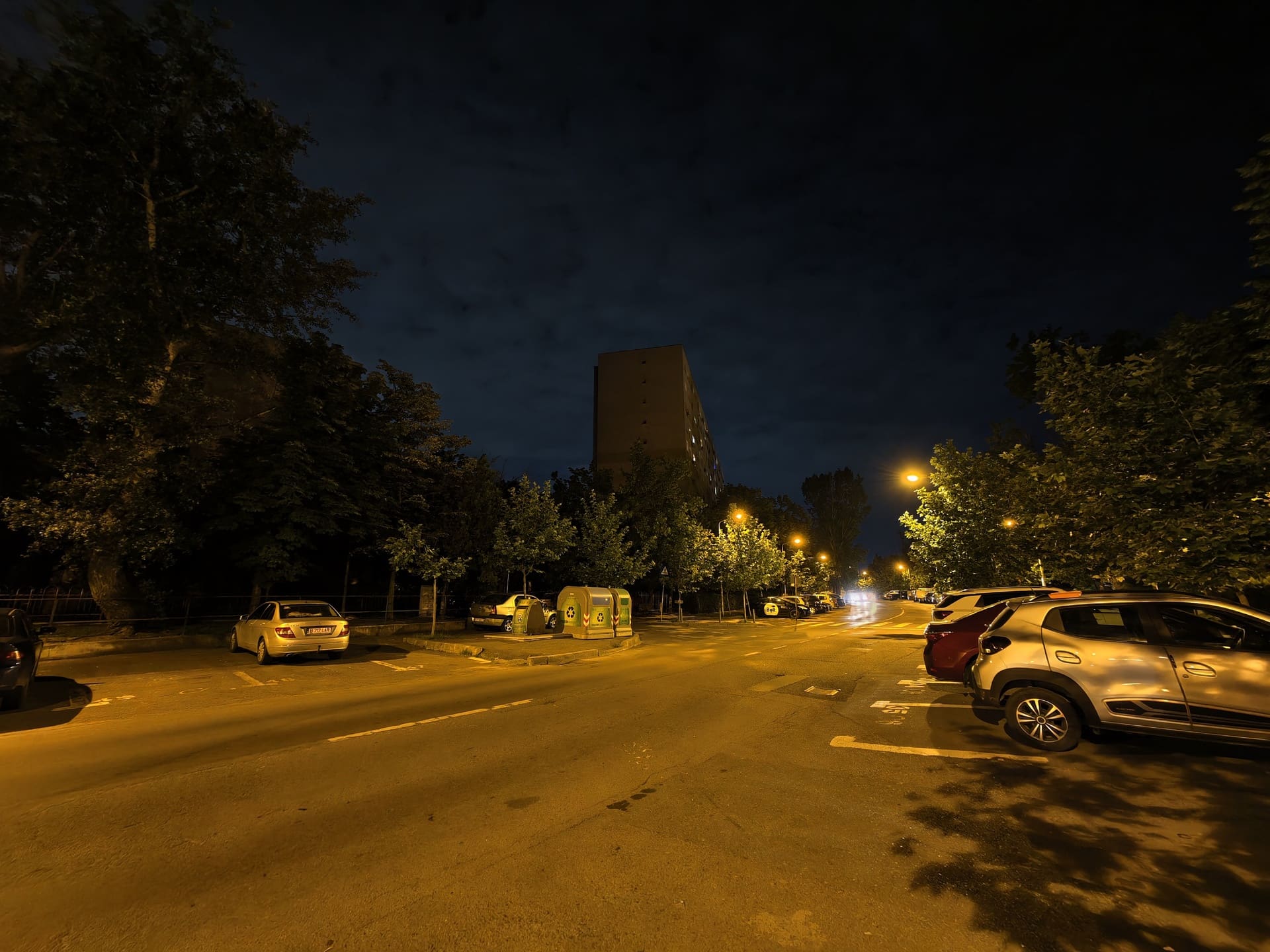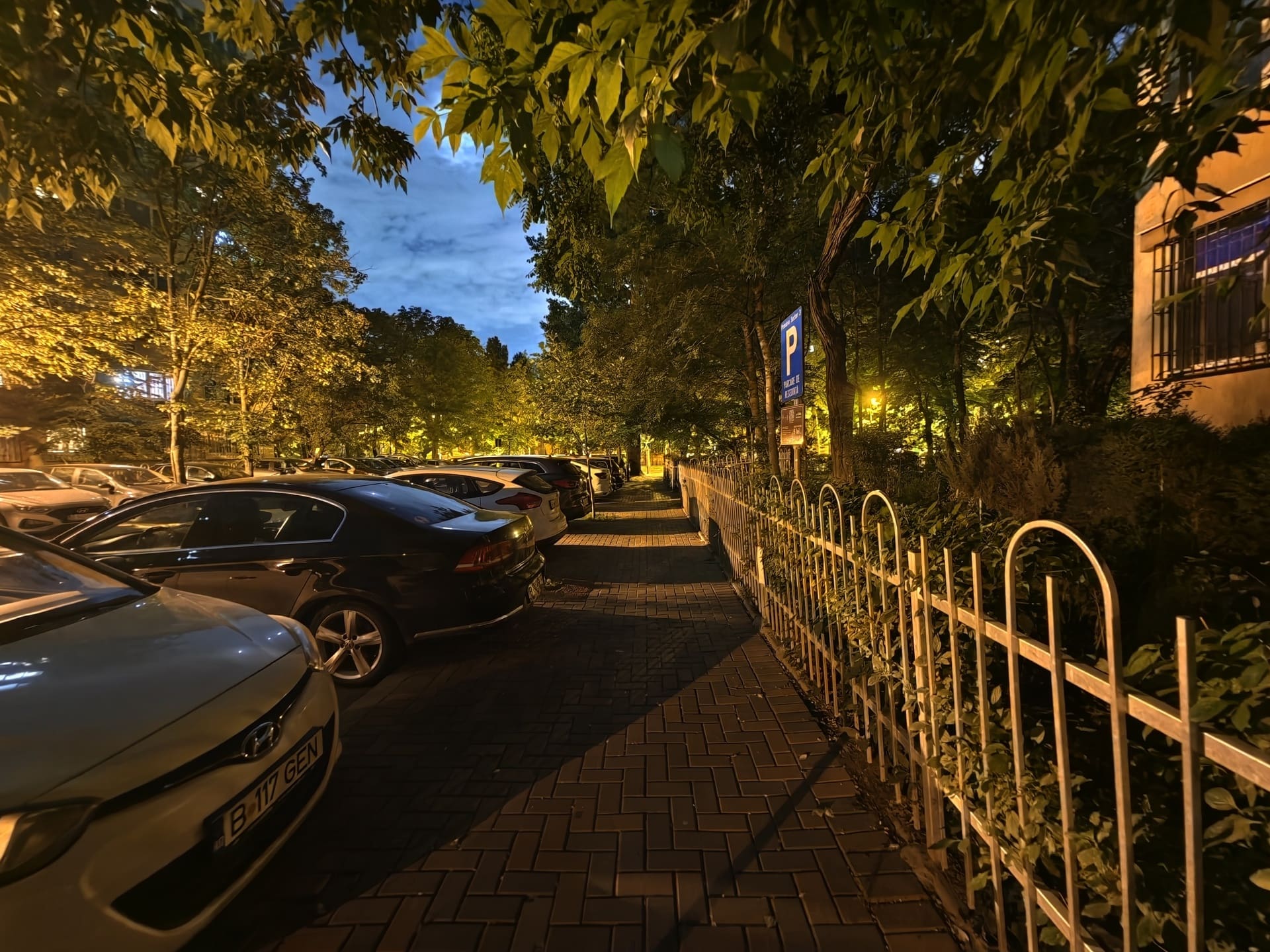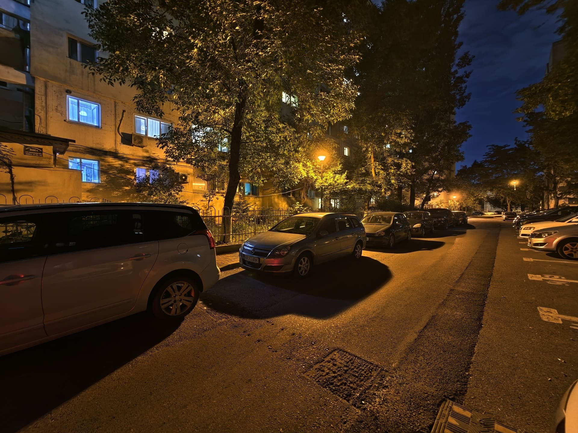Începem discuția despre calitate cu ultrawide-ul, care este probabil cel mai bun din piață în acest moment. Nu doar că are o deschidere foarte largă, fiind o cameră excelentă pentru peisaje sau arhitectură, dar capturează detalii foarte bune, în special în centrul imaginii. Pe margini se vede o tentă mai soft, dar este ceva normal pentru obiective ultrawide. Imaginile pe timp de zi sunt puțin supraexpuse pe alocuri, dar este impresionant faptul că avem de a face cu un contrast plăcut, dar și detalii foarte bune în zonele mai întunecate, ceea ce sugerează că avem de a face cu un senzor cu interval dinamic foarte bun. Este unul dintre puținele ultrawide-uri pe care îl pot recomanda fără rețineri. Și pe timp de noapte se descurcă bine, chiar mai bine decât camerele principale de pe anumite telefoane mai ieftine. Avem detalii bune, zgomot de imagine bine estompat și nu am observat probleme la captură lungă, în principal datorită faptului că este un ultrawide stabilizat optic, ceva ce nu vedem foarte des.