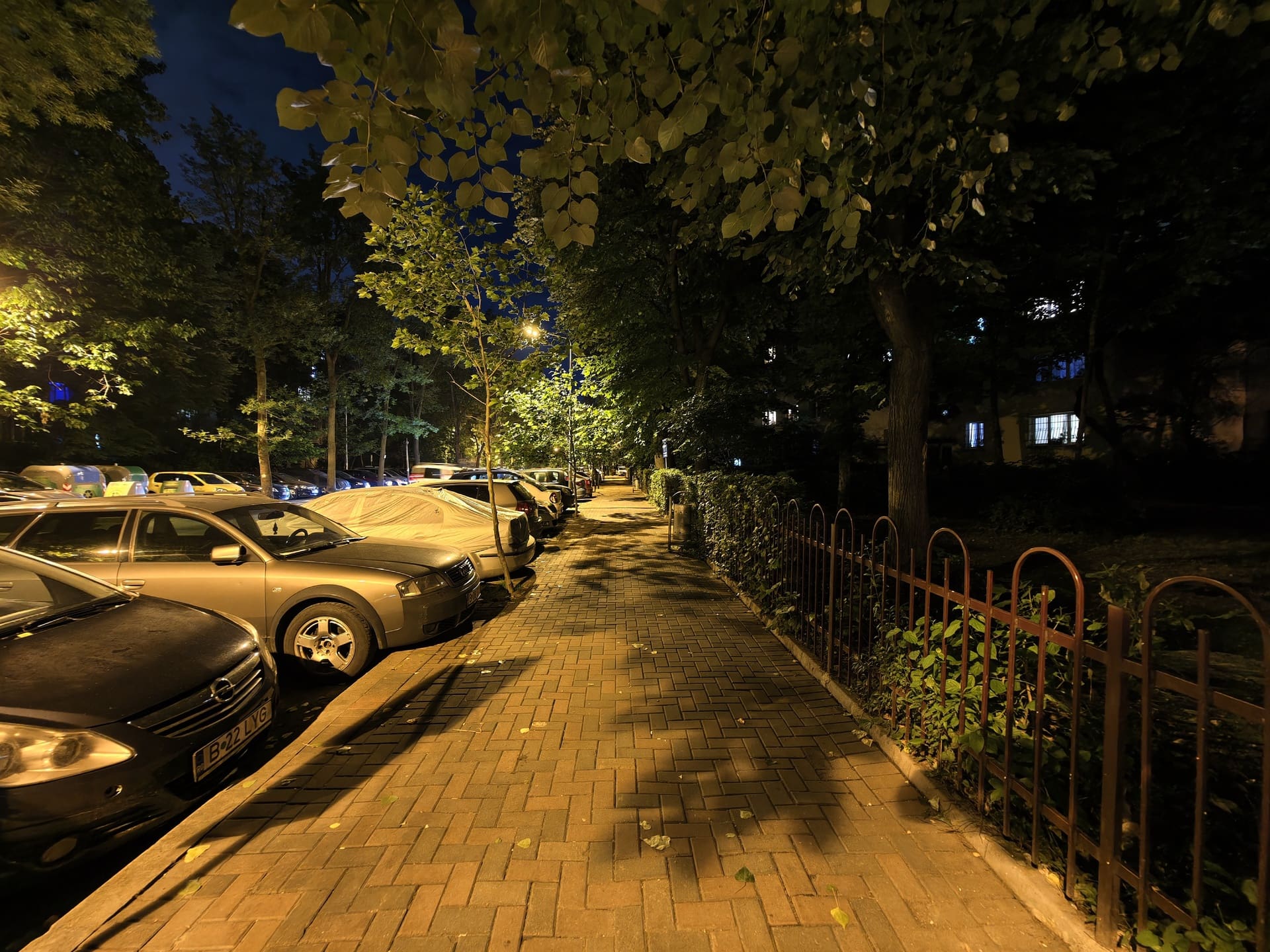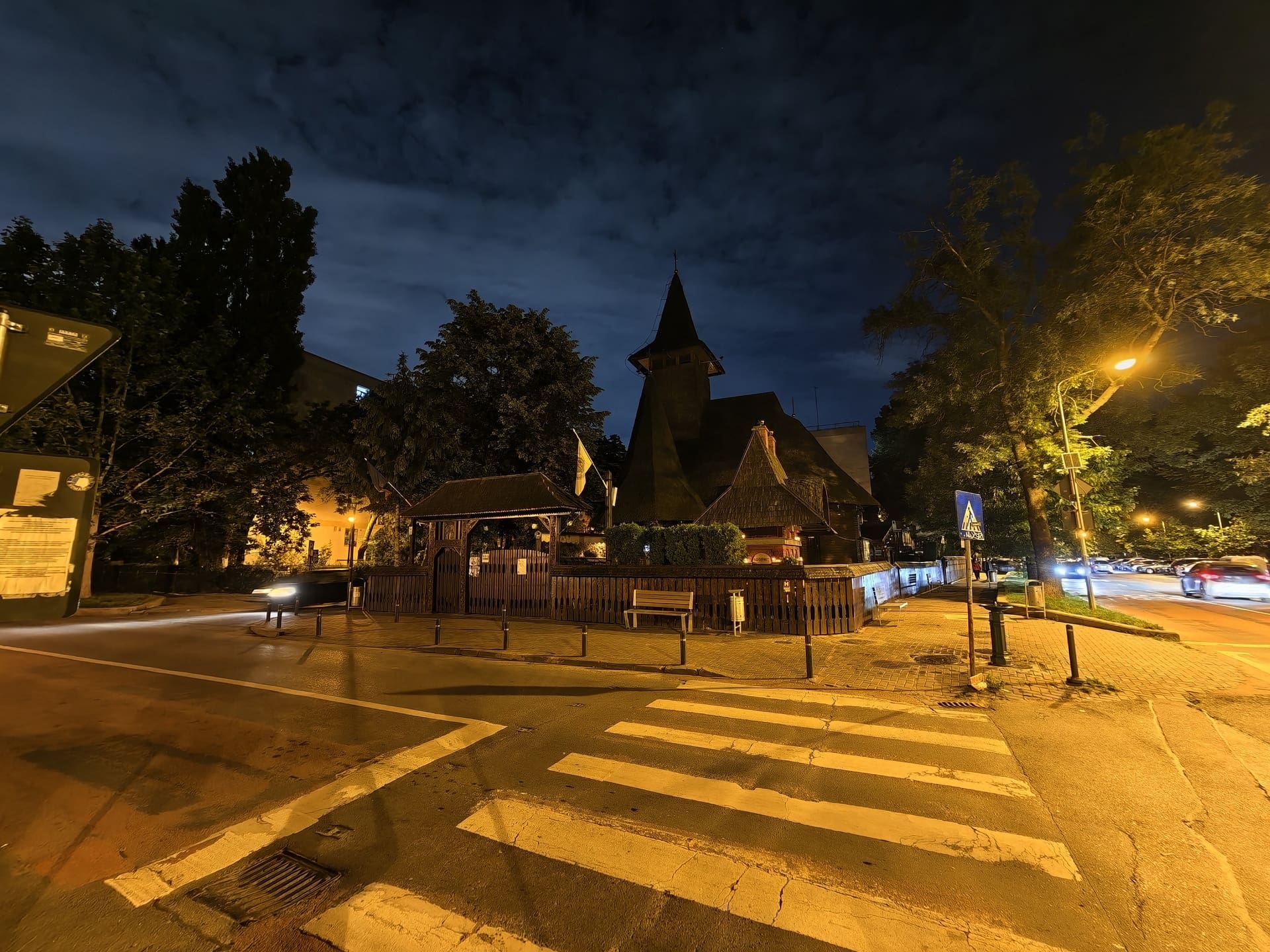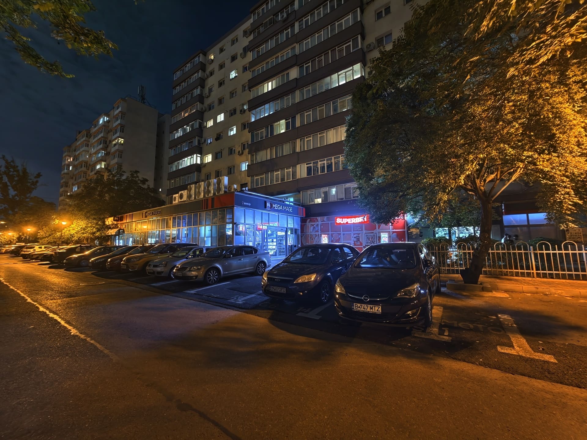 Începem discuția despre calitate cu ultrawide-ul, care este probabil cel mai bun din piață în acest moment. Nu doar că are o deschidere foarte largă, fiind o cameră excelentă pentru peisaje sau arhitectură, dar capturează detalii foarte bune, în special în centrul imaginii. Pe margini se vede o tentă mai soft, dar este ceva normal pentru obiective ultrawide. Imaginile pe timp de zi sunt puțin supraexpuse pe alocuri, dar este impresionant faptul că avem de a face cu un contrast plăcut, dar și detalii foarte bune în zonele mai întunecate, ceea ce sugerează că avem de a face cu un senzor cu interval dinamic foarte bun. Este unul dintre puținele ultrawide-uri pe care îl pot recomanda fără rețineri. Și pe timp de noapte se descurcă bine, chiar mai bine decât camerele principale de pe anumite telefoane mai ieftine. Avem detalii bune, zgomot de imagine bine estompat și nu am observat probleme la captură lungă, în principal datorită faptului că este un ultrawide stabilizat optic, ceva ce nu vedem foarte des.
