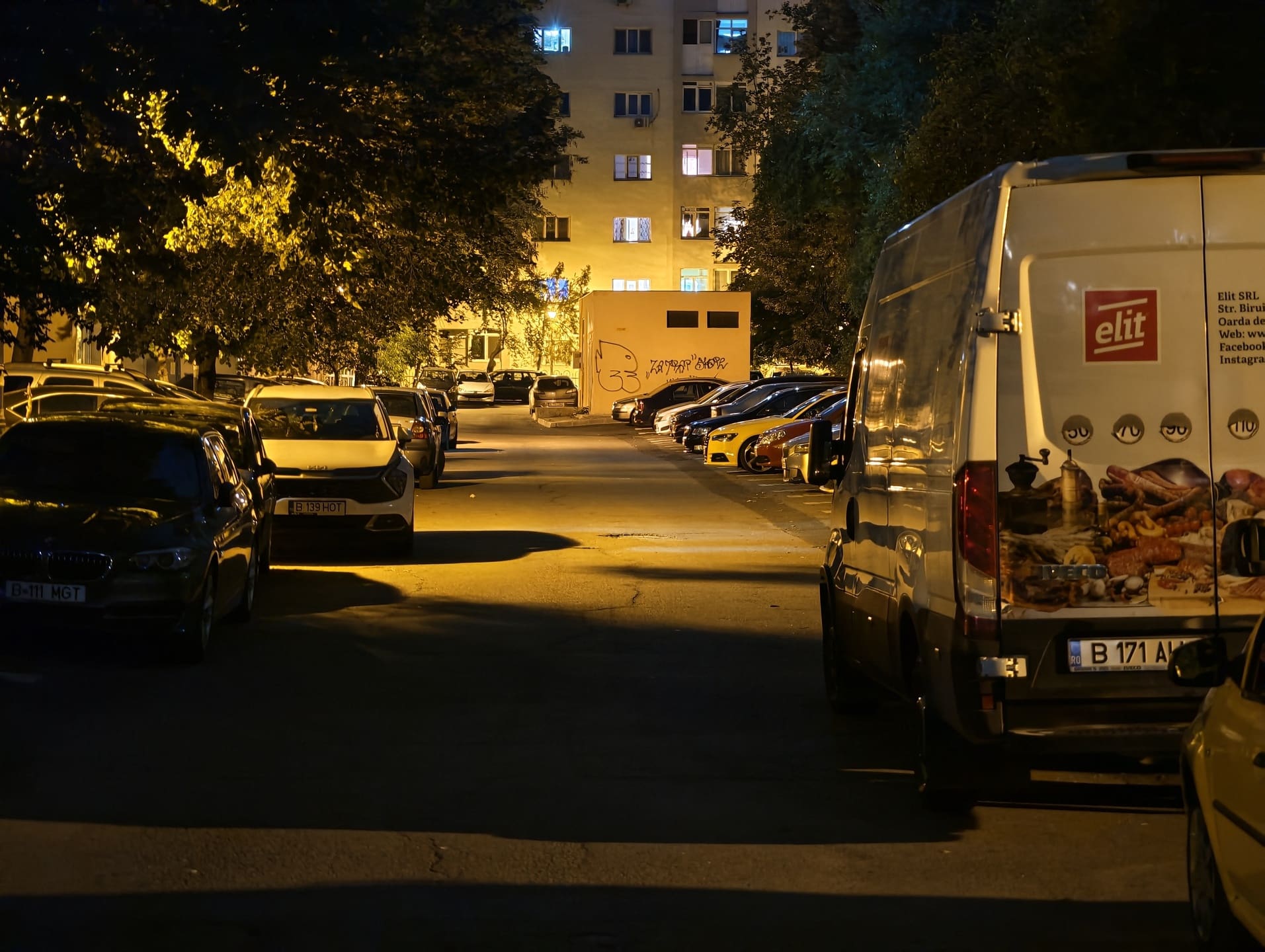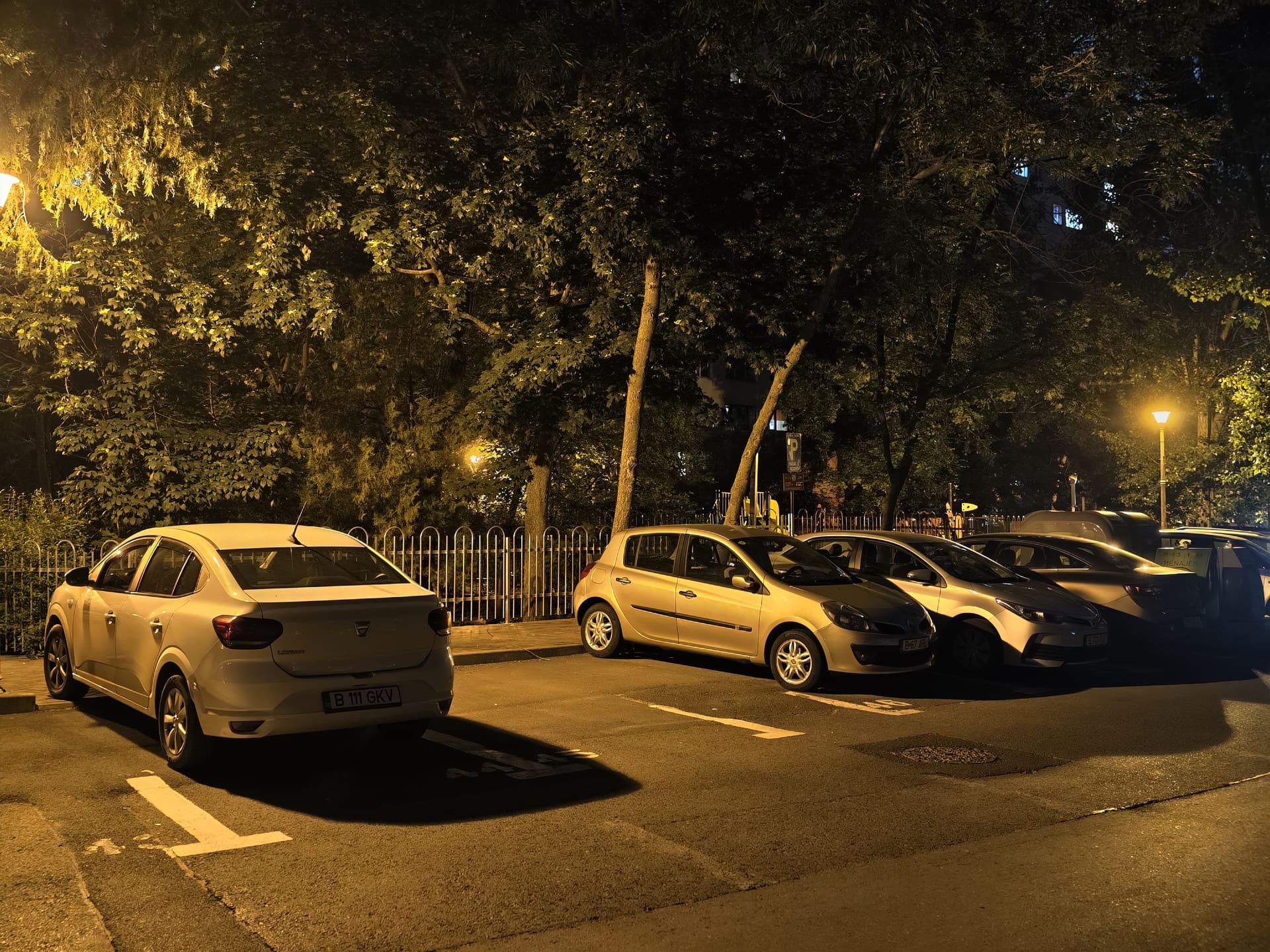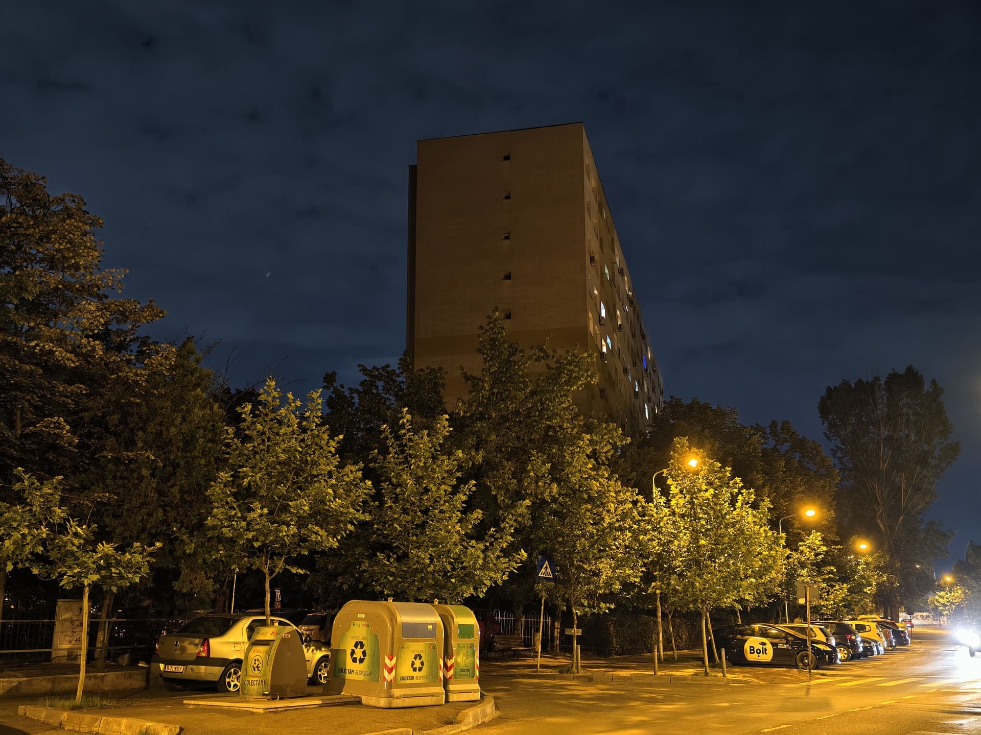 Noaptea, camera cu zoom mi se pare că nu se ridică la nivelul celorlalte, în principal din cauză că preview-ul de pe ecran este sacadat la expunere lungă față de celelalte două camere, pe care nu se întâmplă asta. Astfel, unele cadre ies puțin mișcate. În rest, toate observațiile de la celelalte camere sunt valabile. Detalii bune, culori OK, dar o atmosferă cam luminată în comparație cu realitatea.