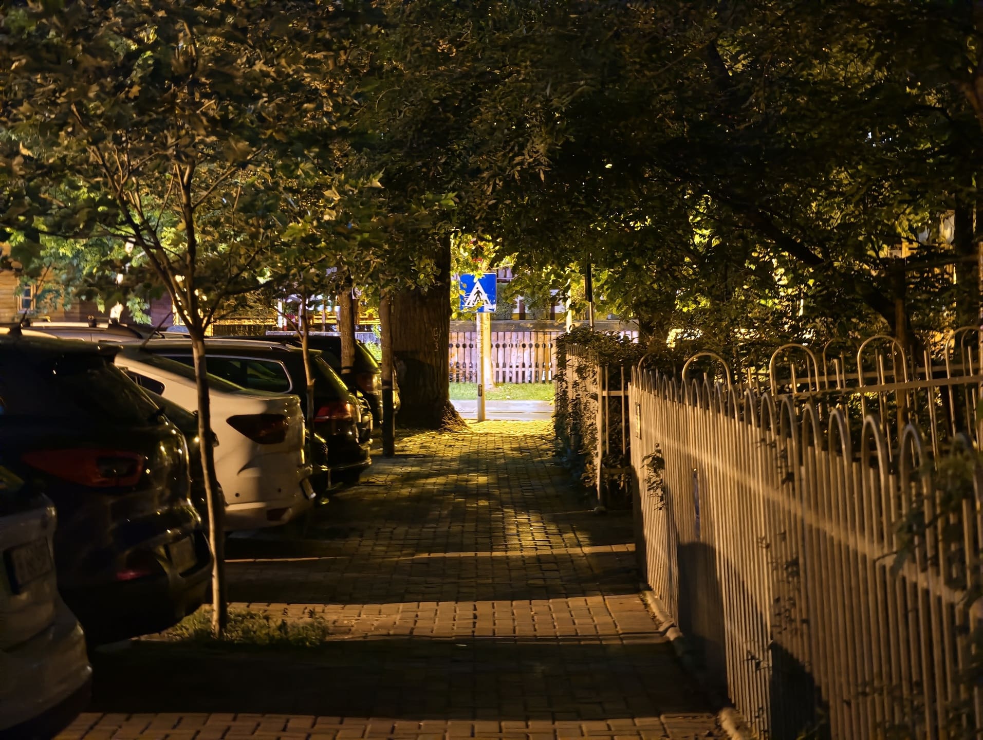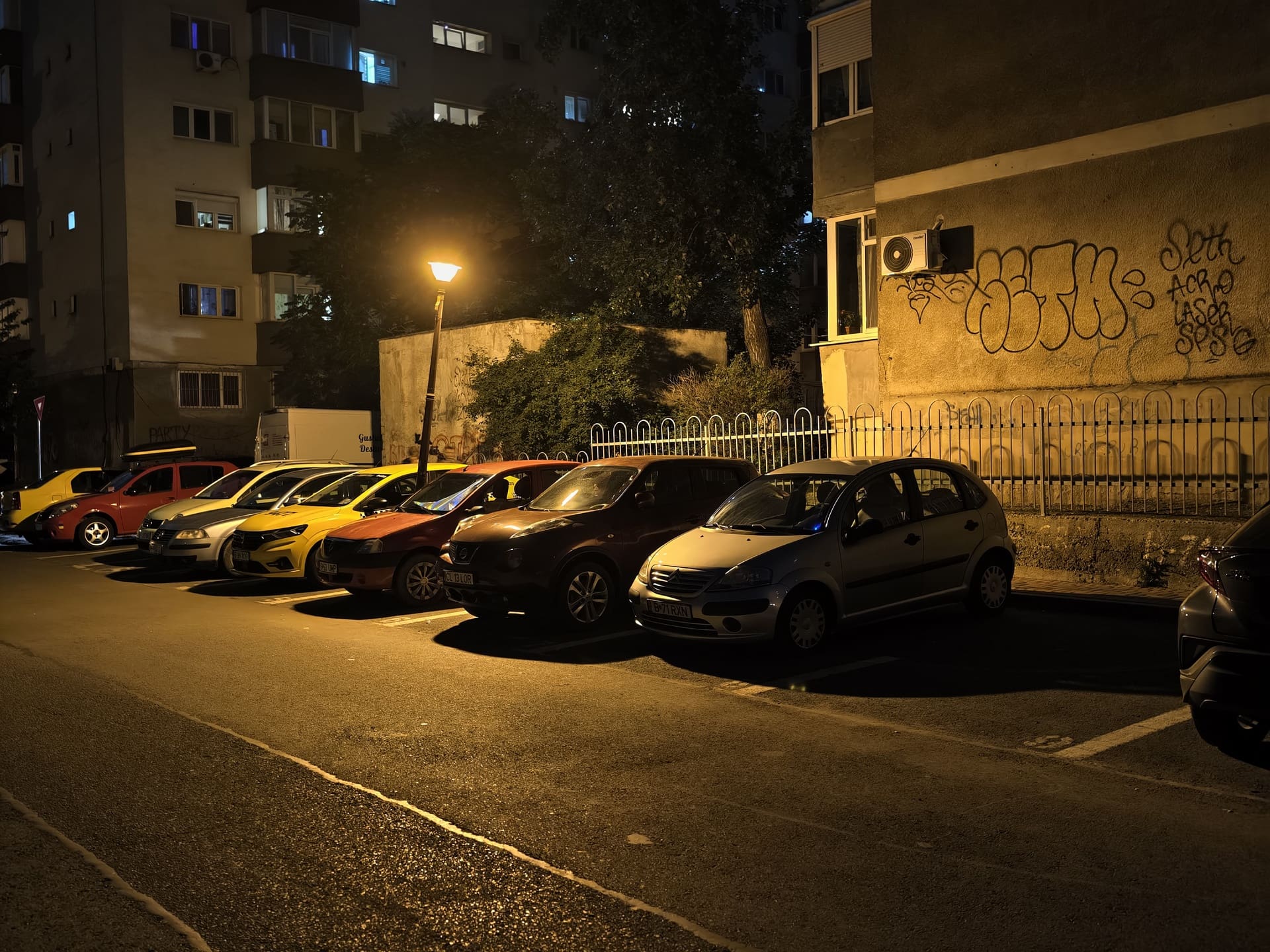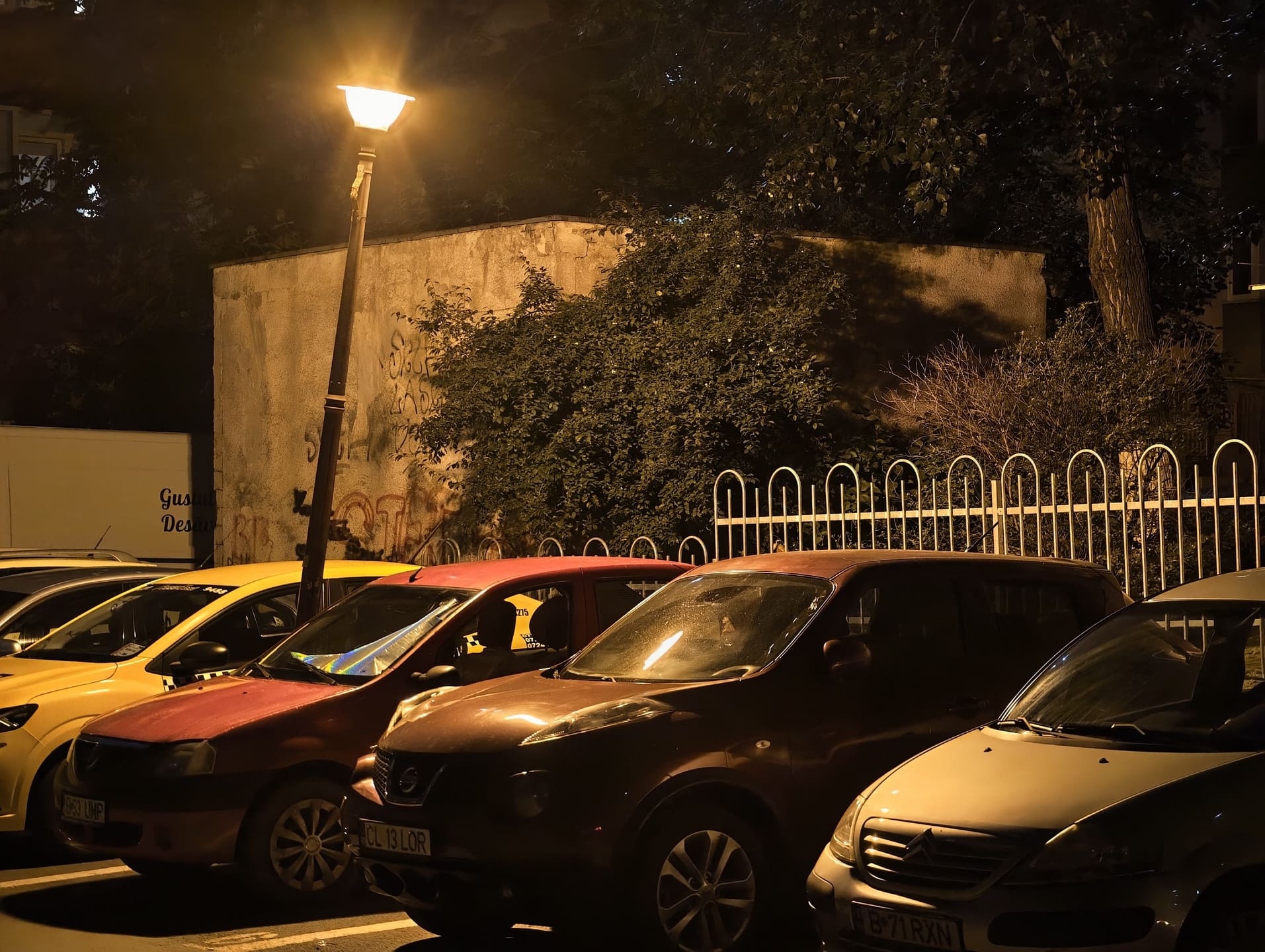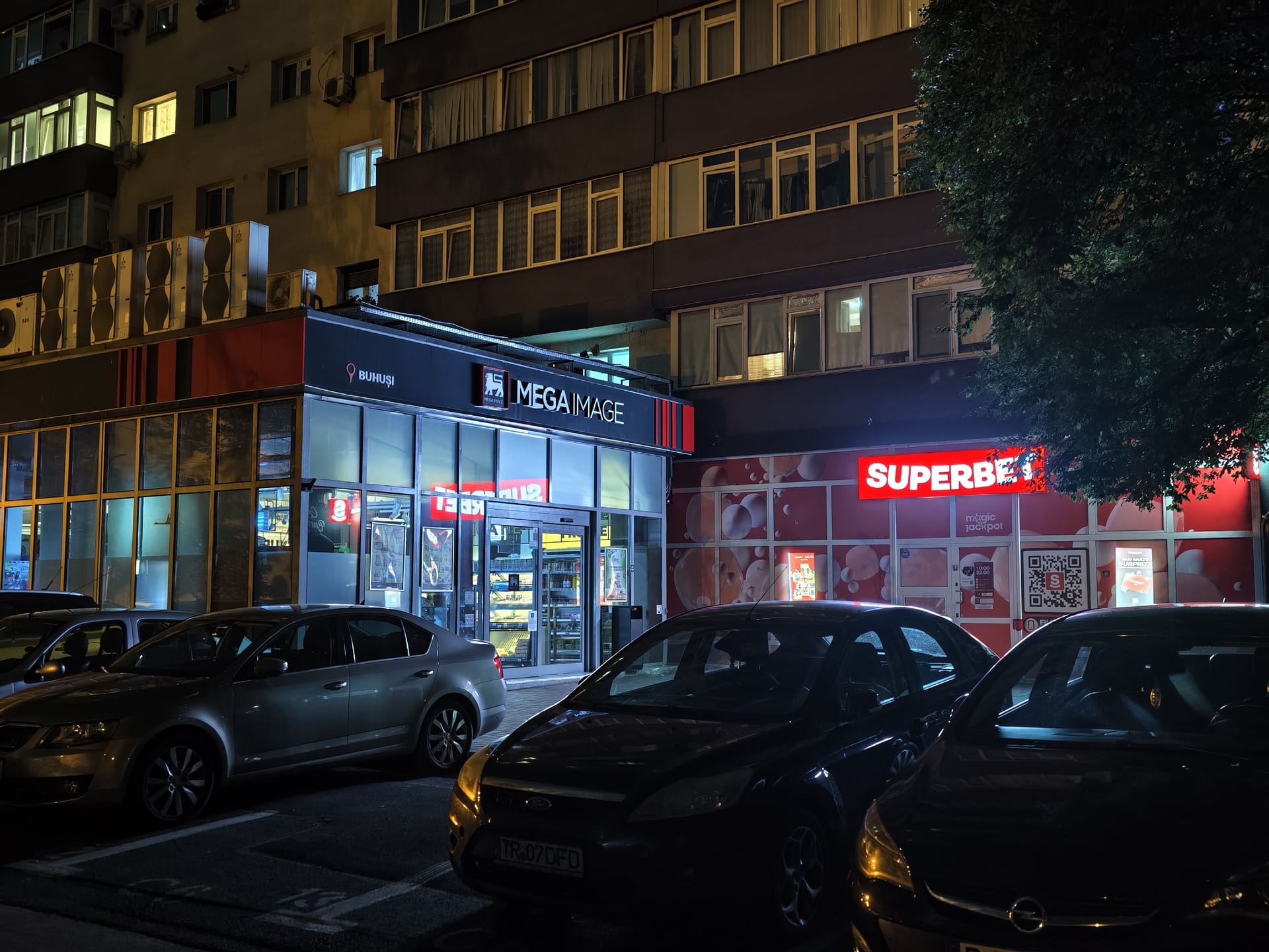Noaptea, camera cu zoom mi se pare că nu se ridică la nivelul celorlalte, în principal din cauză că preview-ul de pe ecran este sacadat la expunere lungă față de celelalte două camere, pe care nu se întâmplă asta. Astfel, unele cadre ies puțin mișcate. În rest, toate observațiile de la celelalte camere sunt valabile. Detalii bune, culori OK, dar o atmosferă cam luminată în comparație cu realitatea.